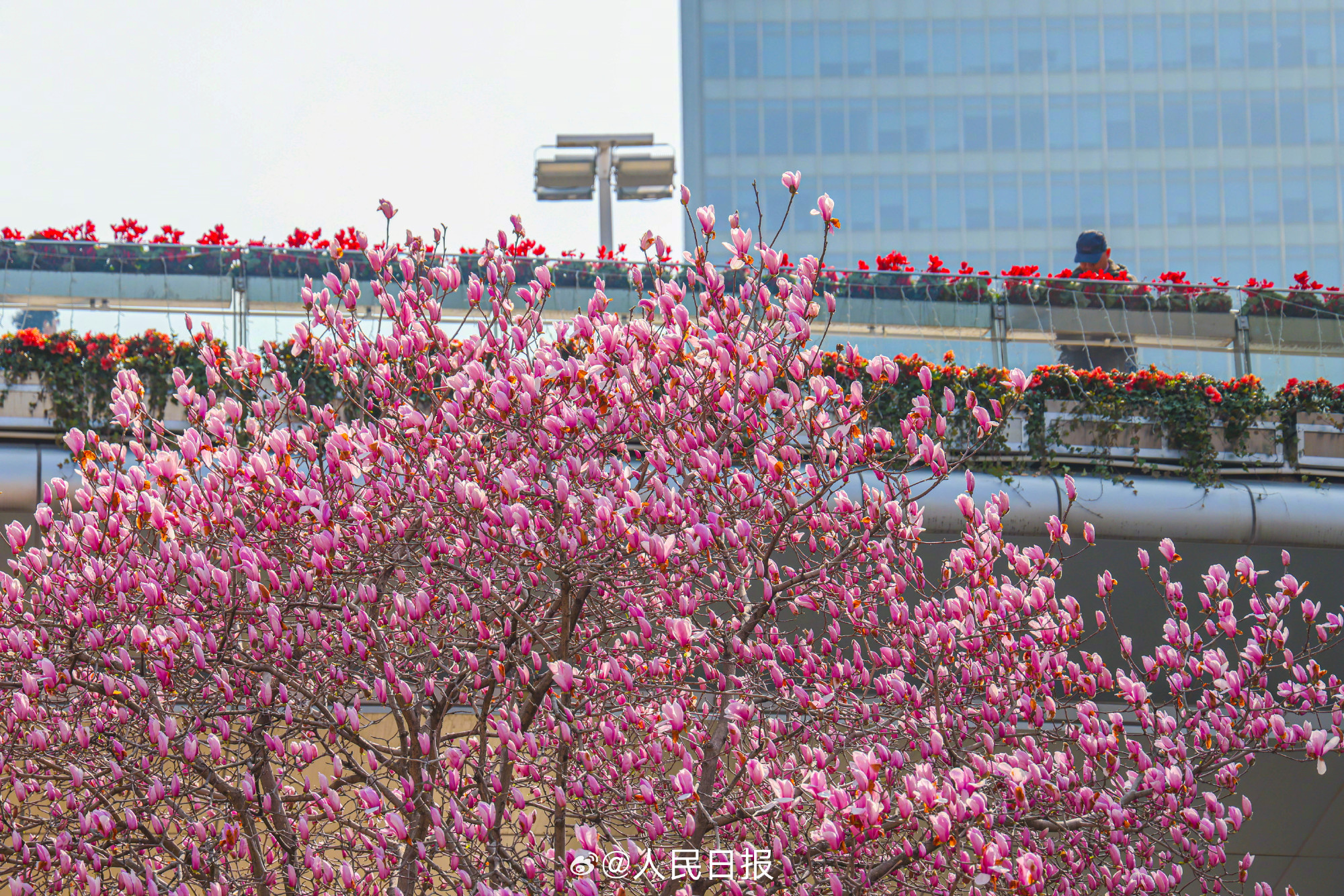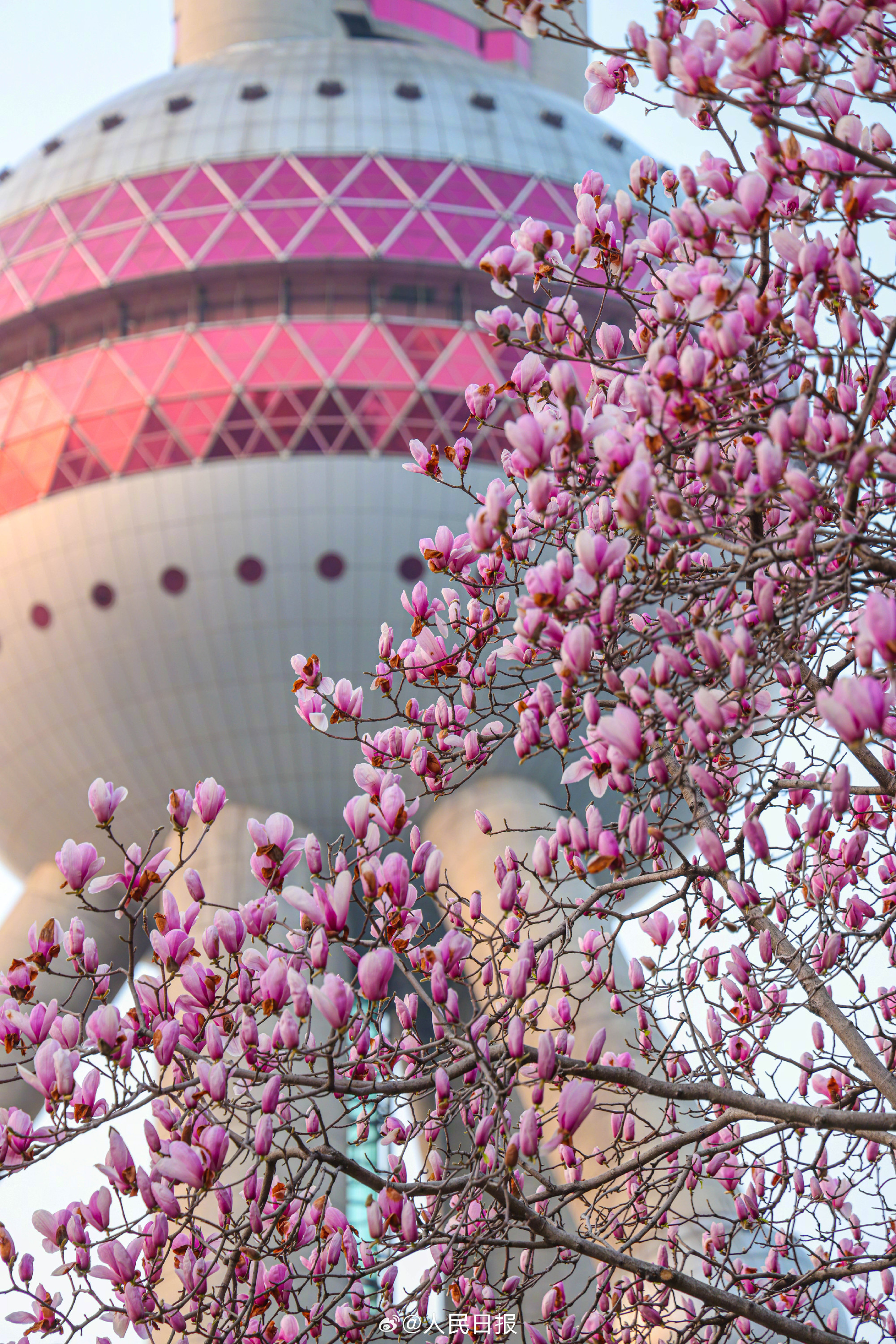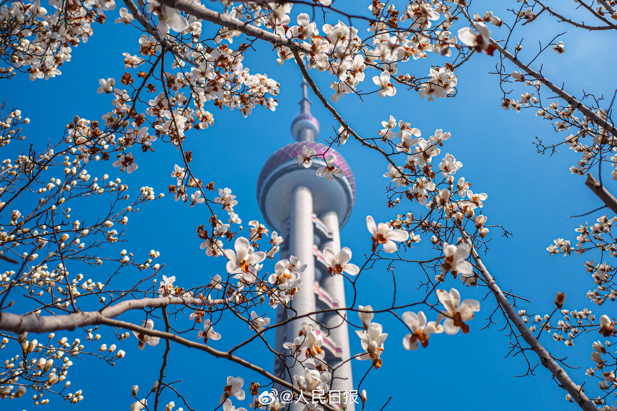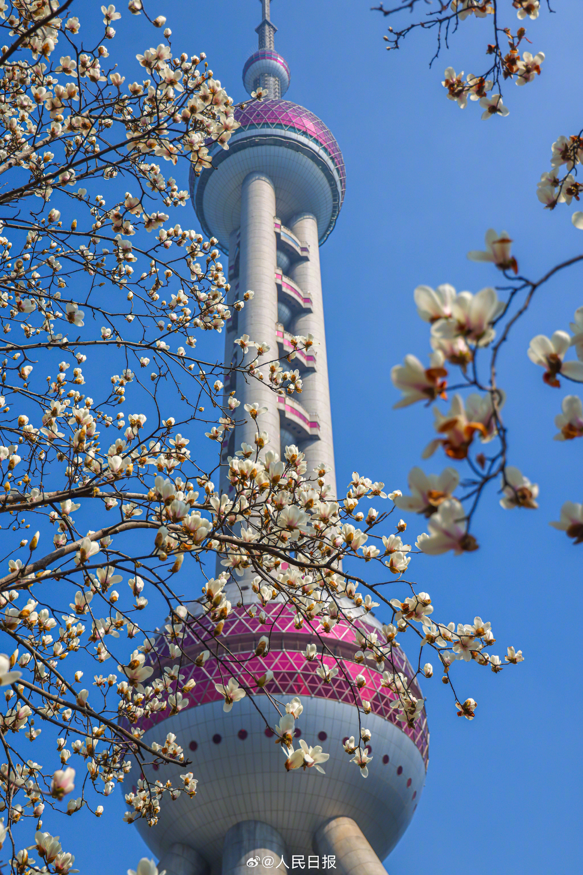 近日,上海陆家嘴环岛玉兰花开正好,吸引人们前来赏花,随手一拍都是春日限定美景。