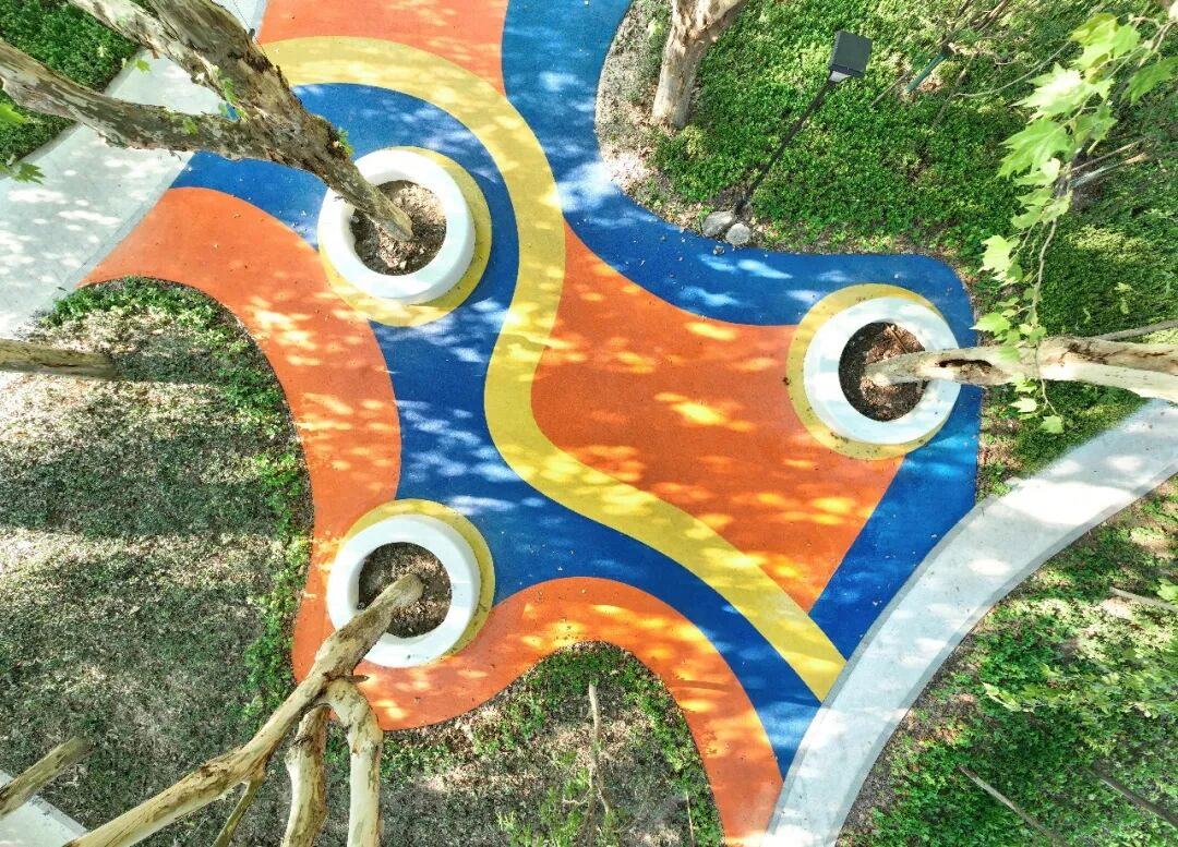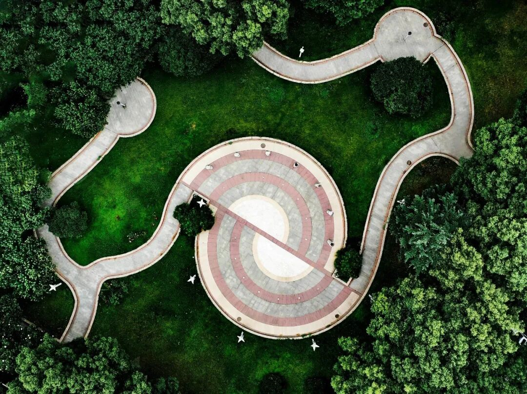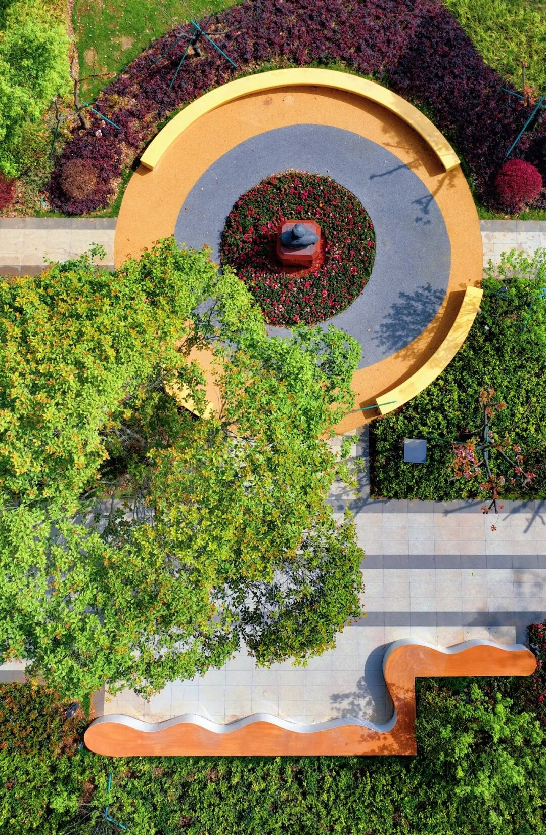校园的道路以几何之美绘就圆的艺术,花草树木随四季回旋生长,让道路间邂逅着无限的生机与活力。