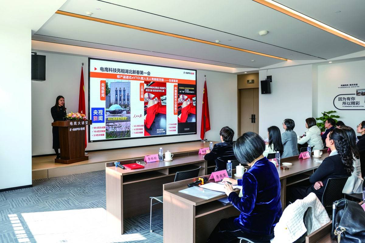 活动中,湖北省三八红旗手、湖北电鹰科技集团有限公司总经理李玲玲结合自身经历,讲述了带领企业深耕无人机领域的奋斗故事。从技术研发到产业应用,从智慧城市到应急救灾、环保监测,电鹰科技以敢闯敢试的精神,在低空经济领域开疆拓土。特别是在今年春节后全省“新春第一会”上,电鹰科技的无人机惊艳亮相,展现了湖北在智能装备领域的创新实力,成为“科技赋能产业”的生动注脚。李玲玲的分享,让与会人员深切感受到“技术”与“市场”双向奔赴的澎湃动能。