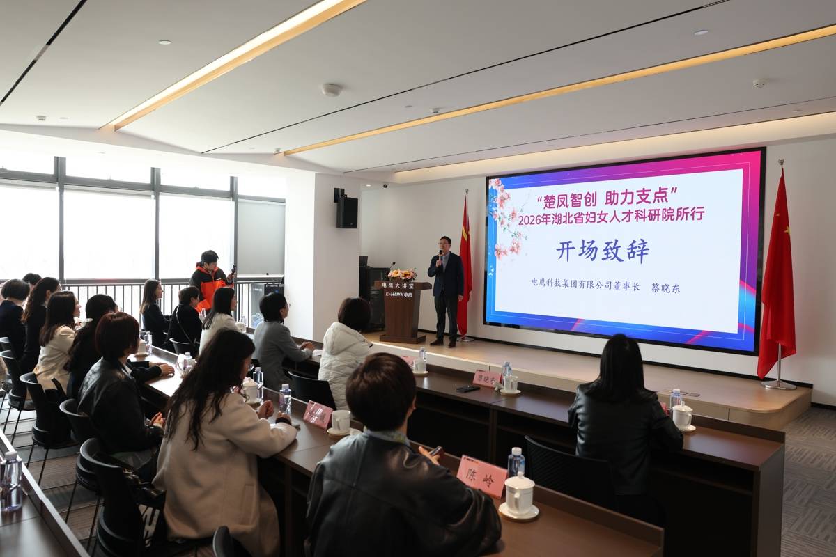 3月13日,2026年“楚凤智创 助力支点”湖北省妇女人才科研院所行活动在湖北电鹰科技集团有限公司举行。来自全省的女性科技教育人才代表齐聚一堂,围绕技术前瞻与产业转化开展深入交流,共话巾帼担当。