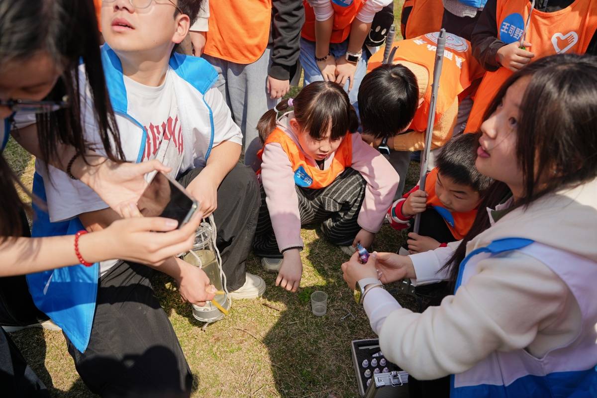 生态科普区域干货满满,省级“本禹志愿服务队”长江委水生态所“鲟梦江河”服务队联合中国地质大学(武汉)人工智能与自动化学院、湖北水利水电职业技术学院、两新回收数字化(湖北)科技有限公司、中建三局城乡水资源与水环境全国重点实验室、中建武汉黄孝河机场河水环境综合治理建设运营有限公司、中建三局湖北大东湖深隧工程建设运营有限公司等单位组织青年志愿者,现场开展水质检测演示、水生态知识科普、环保互动答题等活动。通过直观体验与趣味讲解,向参与者普及水资源保护、水环境治理等知识,引导大家树立尊重自然、顺应自然、保护自然的生态意识。