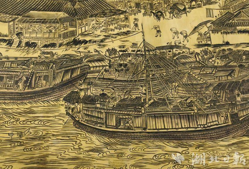 退休之后,曾凡明摒除杂念、潜心临摹,从白描线条入手,一寸一尺打磨细节,一景一物揣摩神韵,先后临摹近百幅小稿,精益求精。千余日夜伏案耕耘,他以惊人毅力将原作放大四倍,绘就25米恢宏长卷,汴河繁华、市井百态跃然纸上,让千年经典在当代笔墨中重焕生机。