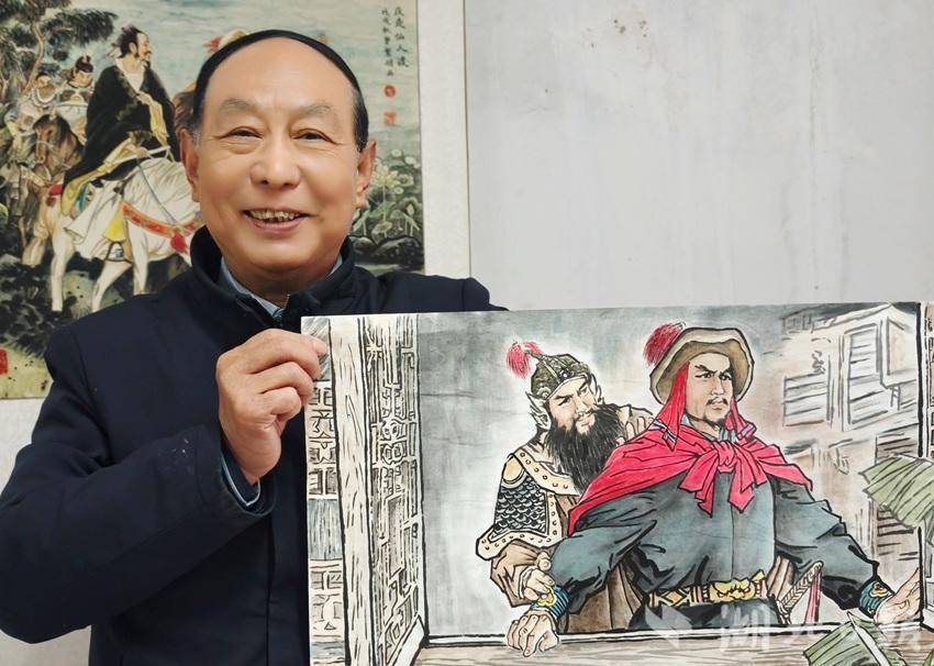 临摹是传承,本土是创新。他立足谷城厚重历史,以明末李自成、张献忠谷城会盟为题材,潜心创作150余幅连环国画《双雄会》,艺术再现家乡历史风云。作品成功入选2024年度襄阳市重点文艺创作扶持项目,也是全市唯一获此殊荣的美术作品。