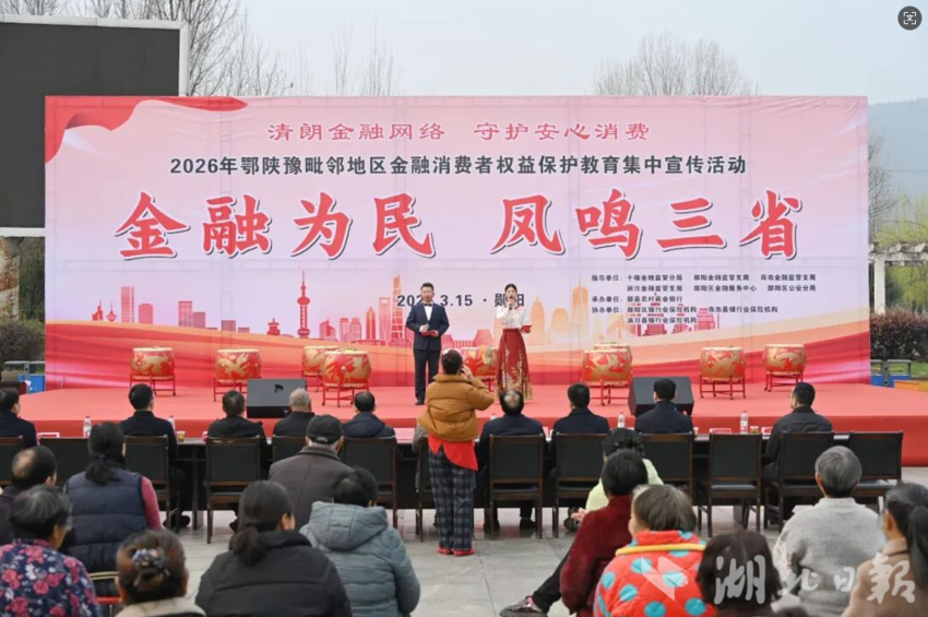 湖北日报讯(通讯员段白龙、胡玲、王成骏)3月13日,十堰市郧阳区金融监管部门牵头,联合陕西省商南县、河南省淅川县两地多部门及各类金融机构,在郧阳区白浪镇丹江村广场正式启动2026年“3·15”金融宣传教育活动。此次跨区域联动宣传,紧扣“金融为民 凤鸣三省”主题,践行“清朗金融网络 守护安心消费”口号,打破地域行政壁垒,整合三省毗邻区域金融资源,发挥“口子镇”金融宣传辐射作用,把金融安全知识送到群众家门口,全力守护群众财产安全,提升全民金融素养。