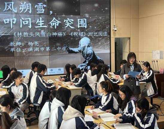 课堂教学展示环节,四位青年教师围绕单篇教学与群文教学展开同台切磋,以情境创设、任务驱动呈现高质量竞赛课。贺龙中学余晴以“时代影像馆”重构《风景谈》,引导学生挖掘作品精神力量;洪湖二中杨亮设置“心理咨询室”情境,对比研读《林教头风雪山神庙》《祝福》,探析人物命运突围可能;文泉中学石瑾以“朝堂辩论”还原《谏逐客书》历史语境,生动演绎雄辩逻辑;洪湖一中晏田田从成长视角联读《氓》《鹊桥仙》,引导思辨情感与成长智慧。课堂设计新颖多元,充分体现新课标理念。