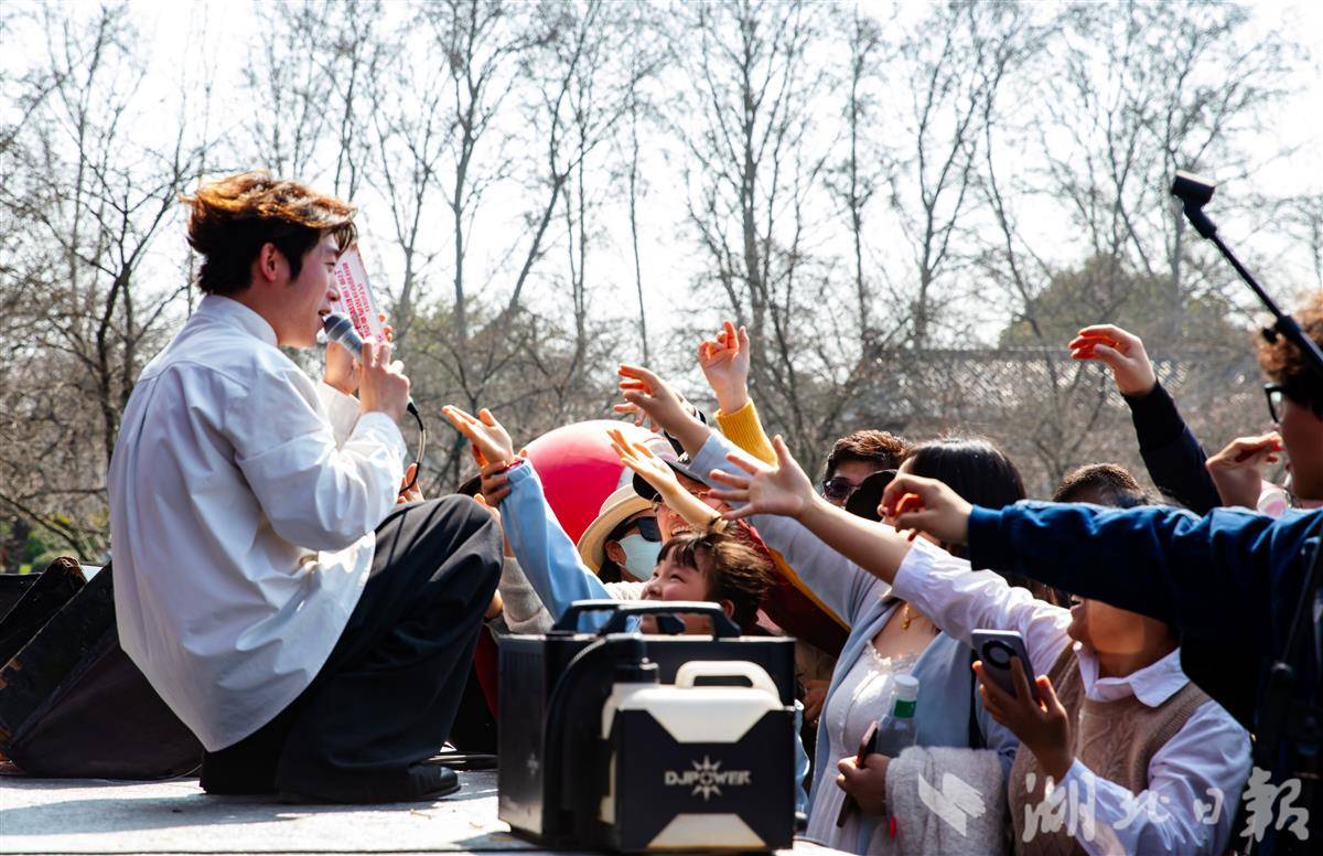 游客们听乐队唱着武汉的故事,唱着春天的歌,现场气氛热烈。