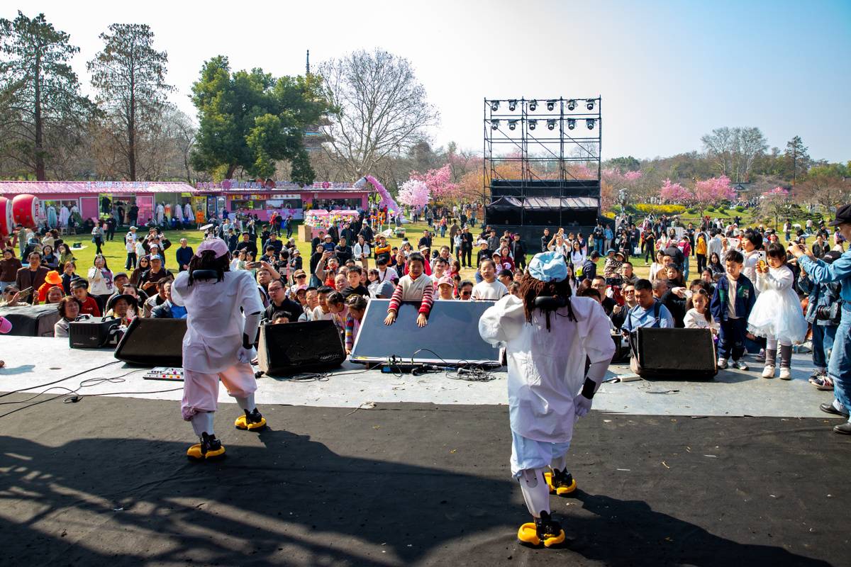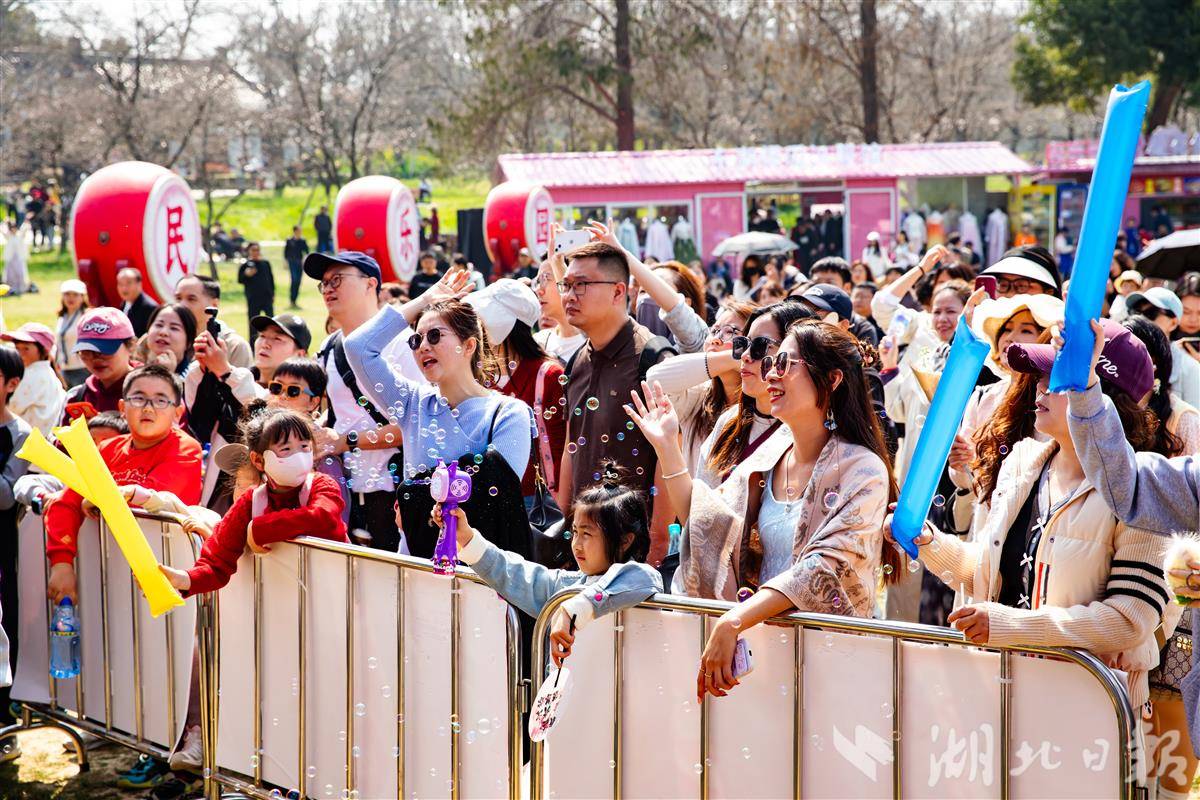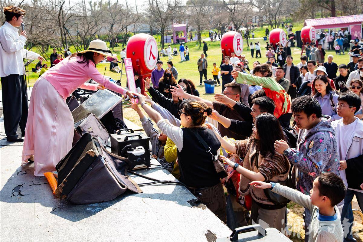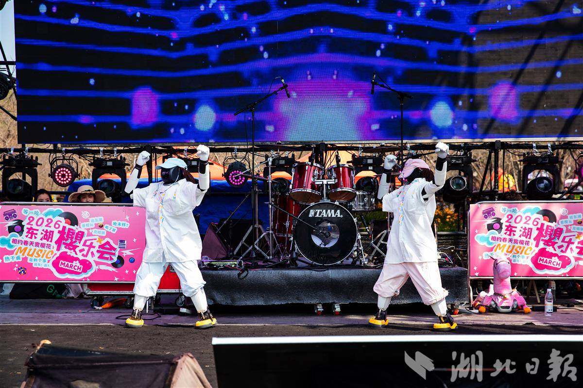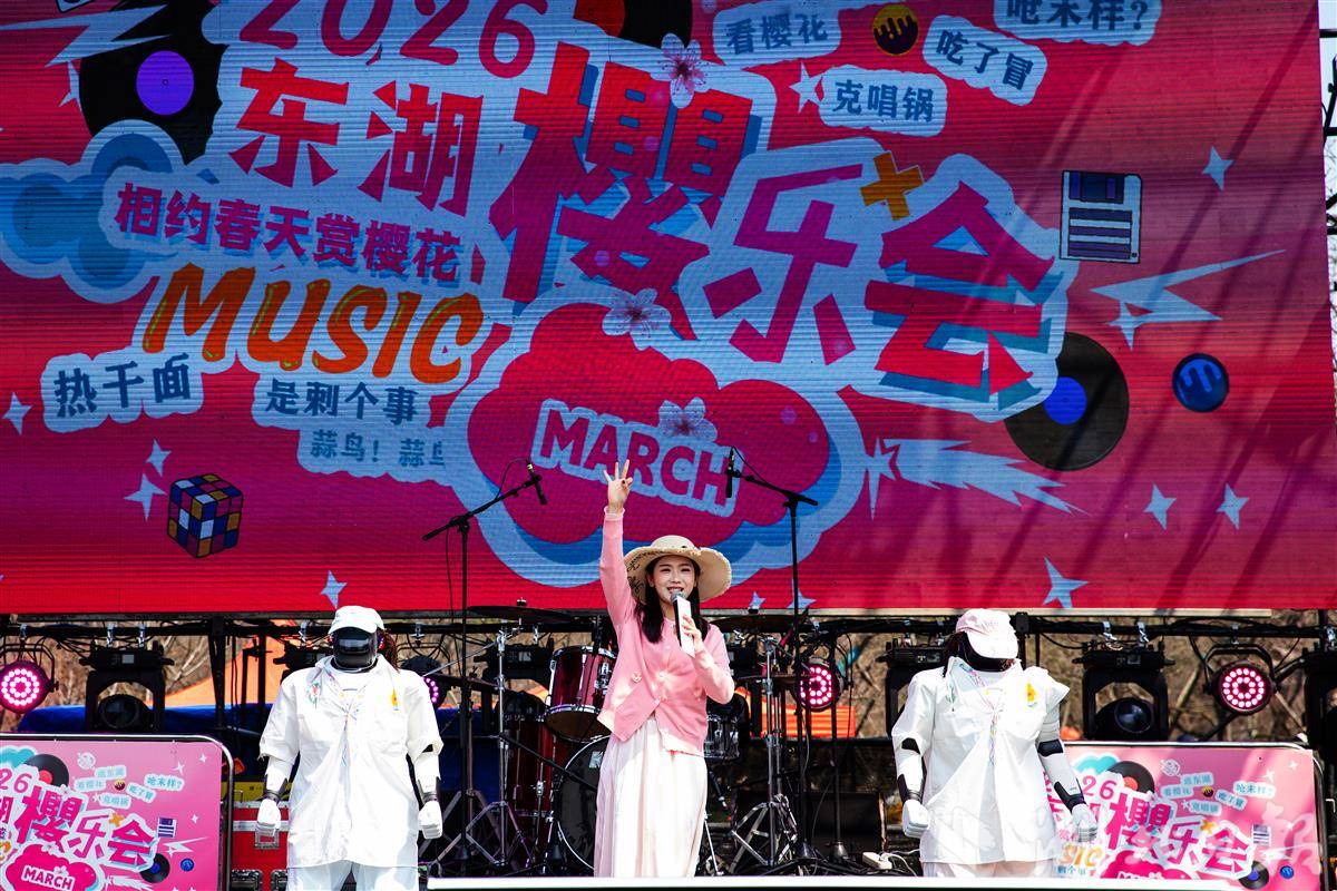 3月14日,武汉东湖樱花园的草坪上,音乐与樱花交织,游客们听热干面乐队唱着武汉的故事,唱着春天的歌,现场气氛热烈。据了解,本季的东湖“樱”乐会演出从3月7日持续到3月15日,从早上10点到晚上7点,会有不同的乐队和机器人的表演。东湖樱花园在繁花与歌声中迎来一年中最热闹的时节。(视界网 张美德 摄)