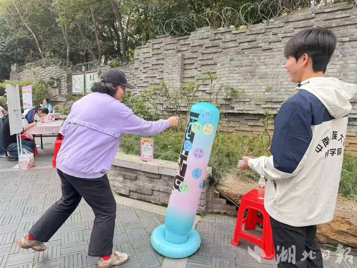 湖北日报讯(记者张华、通讯员洪桢文)“本来只是路过,遇到这场活动,打拳击柱、捏泡泡膜,心情很放松!”3月14日,暖阳洒满湖北中医药大学(昙华林校区)北门广场,“好心情环游记”情绪关怀与精神健康倡导活动热闹开展,吸引百余名居民、游客参与,各个体验区前人头攒动,参与者们在趣味互动中释放情绪、增进理解,让心理健康关怀以更接地气的方式走进群众生活。
