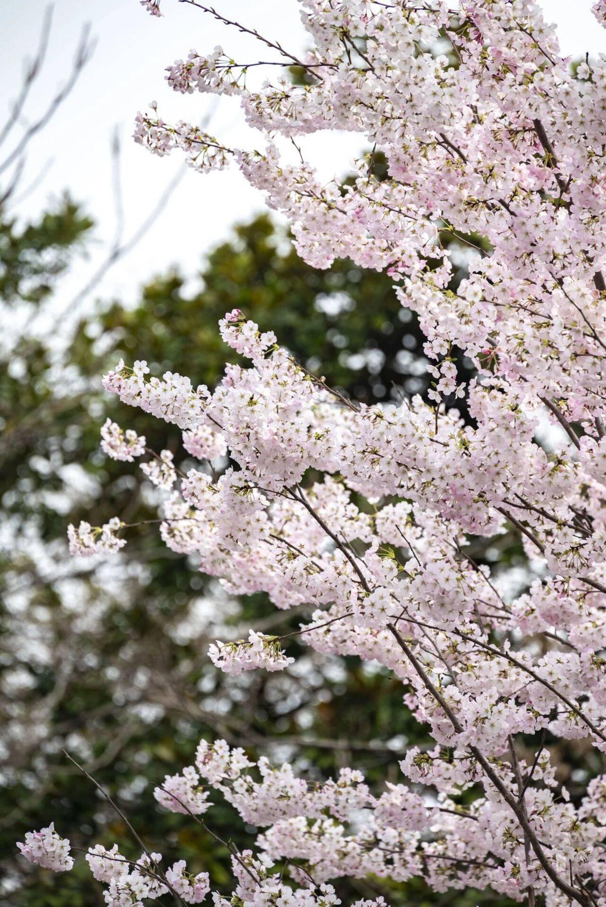 早樱正值盛花期,中樱亦悄然吐露花苞;