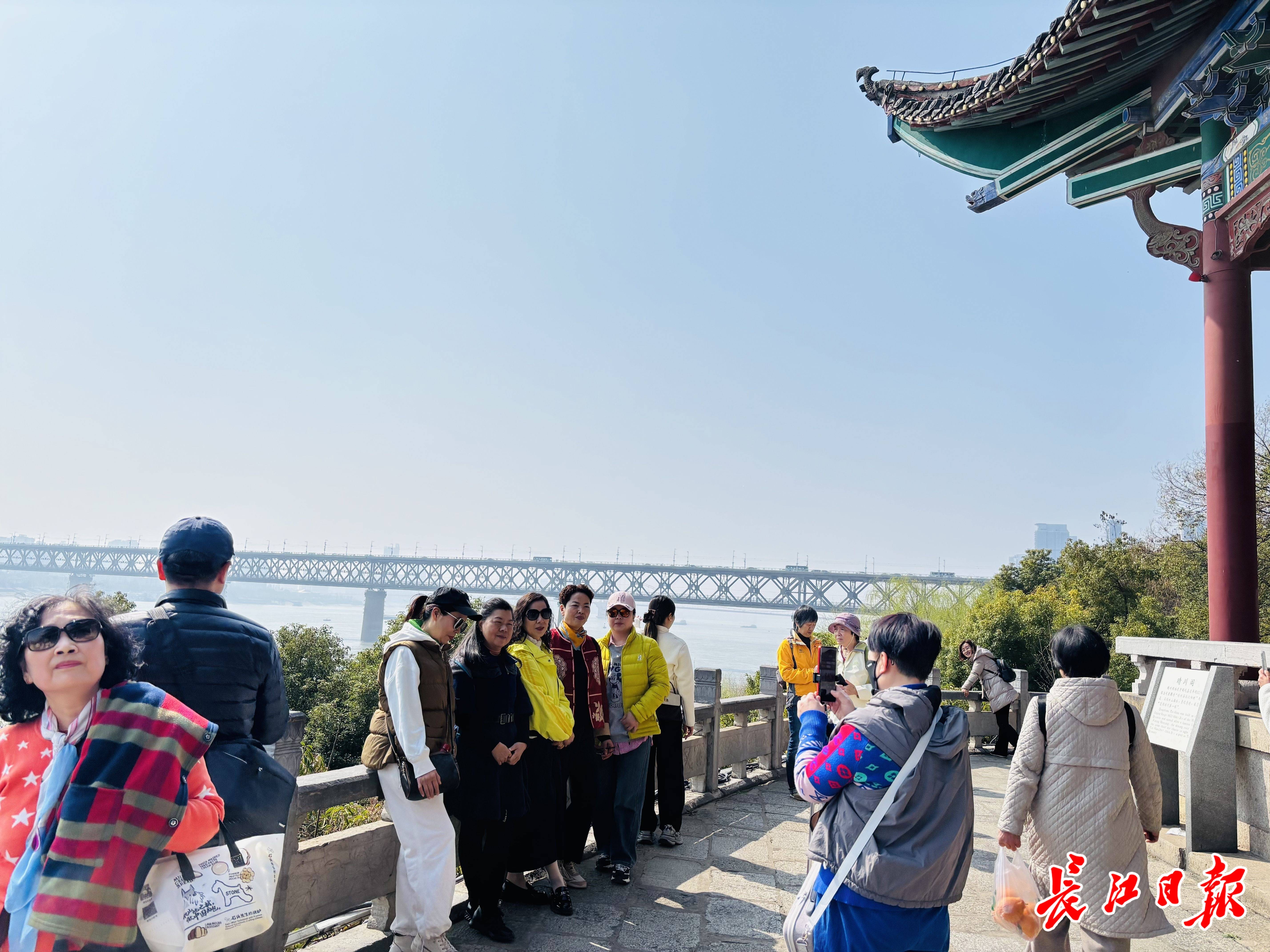 知音文化旅游区是今年崛起的赏樱“新贵”。记者从龟山南路长江大桥汉阳桥头的入口处登上龟山,蝴蝶泉、知音殿等观景平台视野极佳。脚下,长江与汉水交汇,长江大桥如长虹卧波,对岸的黄鹤楼在阳光下泛着金光。山间的樱花栈道旁,早樱开得正欢,人流如织,再过几天中樱即将接力登场。