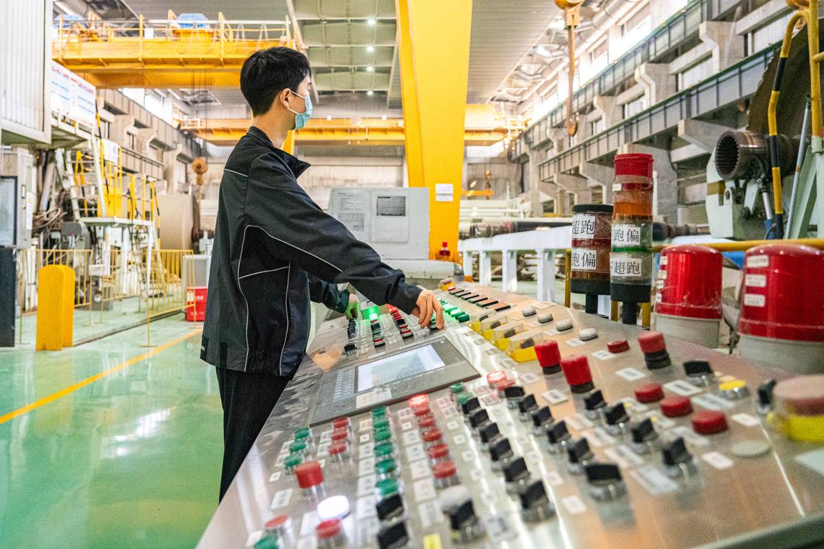 金凤凰纸业工人正在操控自动化生产设备。(湖北日报全媒记者 方桐 通讯员 蔡青阳 摄)
