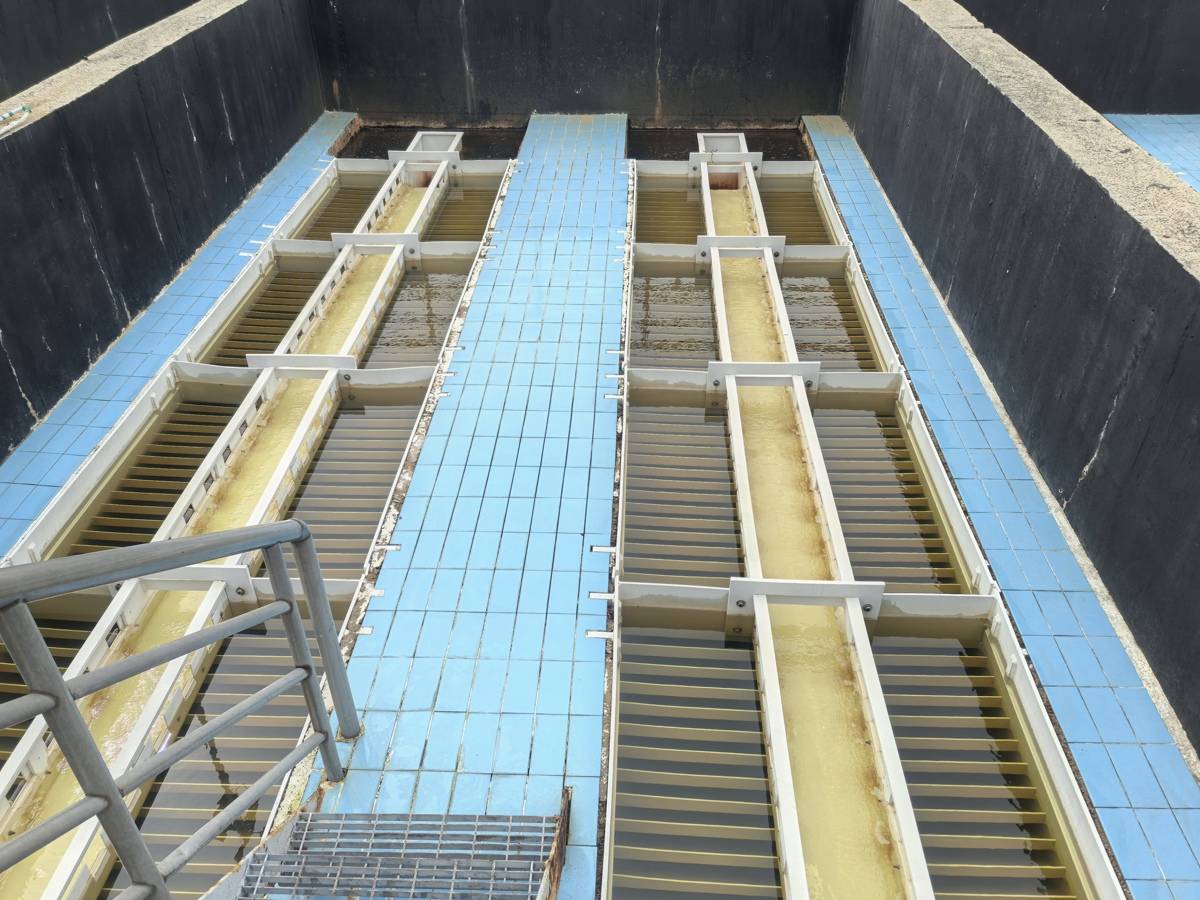 斜板沉淀池里清水流淌。(通讯员 陈峥嵘 摄)