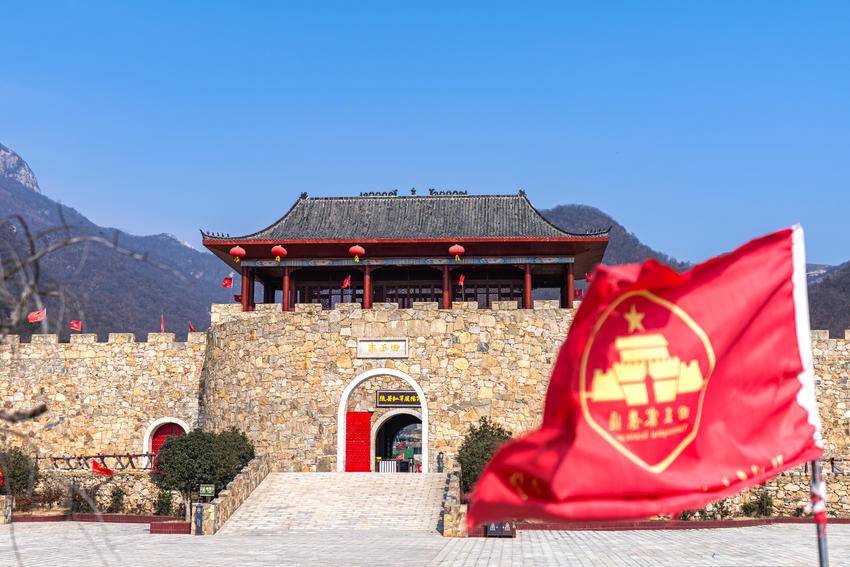 离开祝林店,驱车一小时,进入王店村田王寨景区。田王寨雄踞山腰之上,寨墙逶迤,拱形门楼在群山环抱中格外醒目,素有“华中第一古寨”之称。