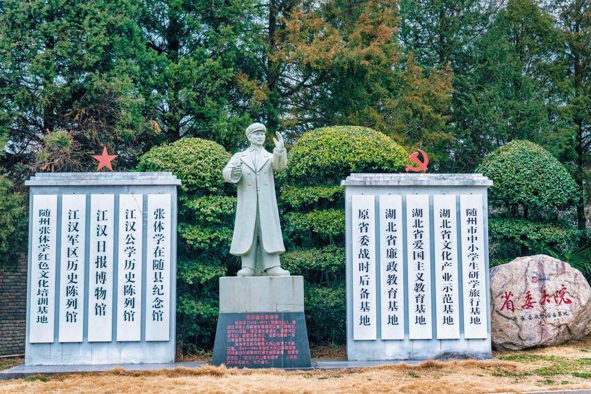 走出政治生活馆,穿过西游记公园,驱车不到2公里,便抵达“张体学在随县”纪念馆。路口处,张体学的挥手雕像静静矗立,仿佛仍在向过往的群众挥手致意。