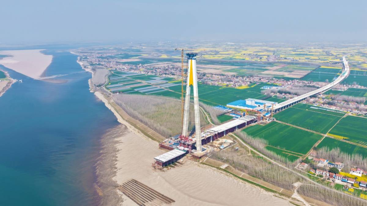 湖北交投荆楚建设公司总经理雷宗建介绍,观音寺长江大桥是武松高速公路江陵至松滋段的过江通道,主桥全长1860米,主跨1160米,是世界最大跨径的混合式组合梁斜拉桥、首座超千米混合式钢-UHPC组合梁斜拉桥。作为补齐江汉平原地区“缺路”短板重点工程,该项目预计2027年建成通车。届时将成为连接武汉、襄阳、宜昌“金三角”的重要快捷通道。