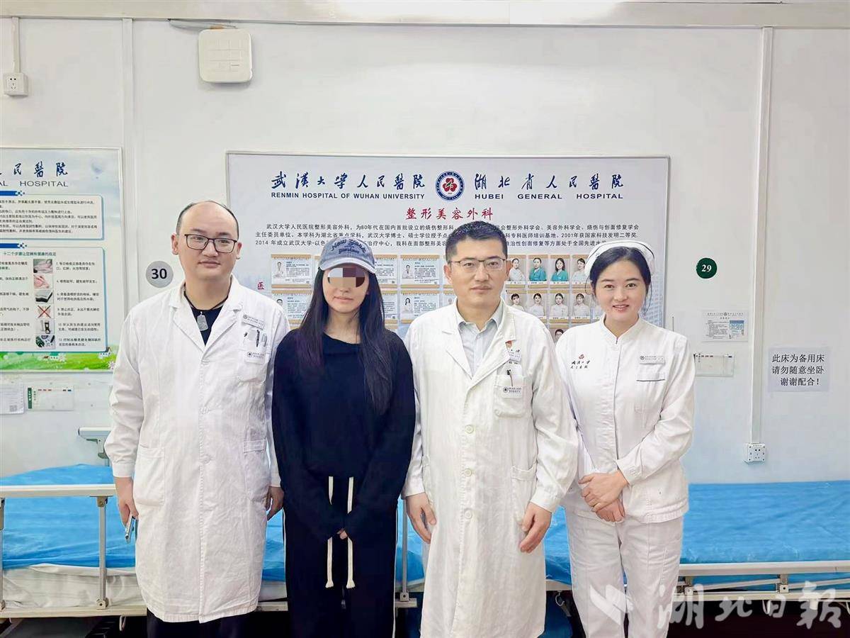 湖北日报讯(记者曾莉、通讯员童怡兰、邹亚琴)爱美之心人皆有之,但不当的医美操作却可能酿成悲剧。27岁的武汉市民吴女士隆鼻手术后引发血管栓塞,鼻部皮肤大面积坏死。近日,经武汉大学人民医院(湖北省人民医院)整形美容中心主任朱占永教授团队三期精细手术,成功为其完成全鼻再造,帮助她重获完整容貌。