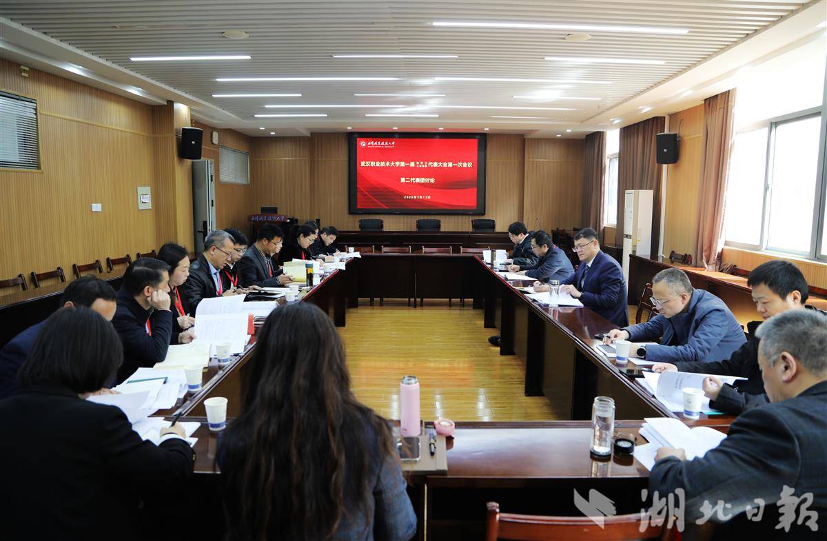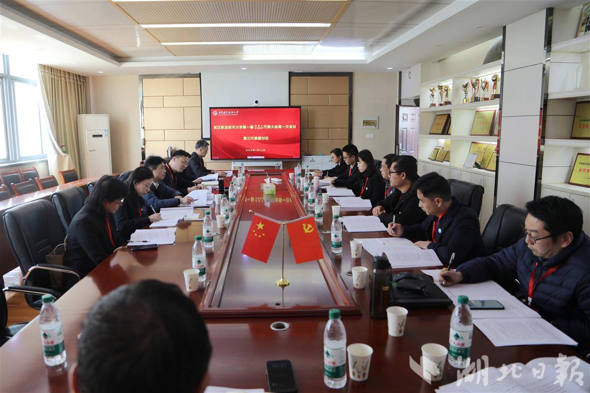 武汉职业技术大学职工代表展开会议讨论。(受访单位供图)