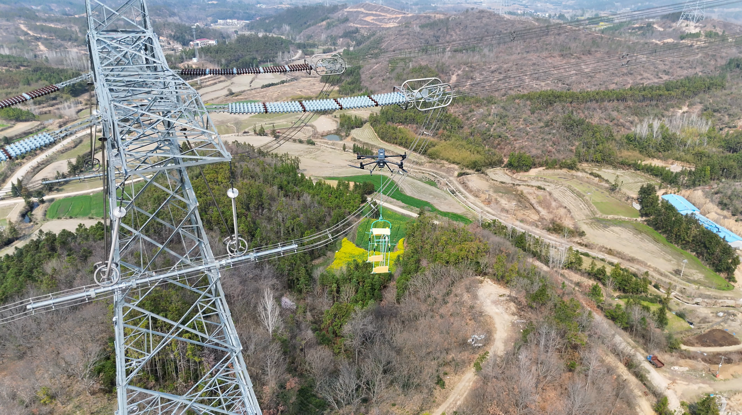 无人机和机器人上塔为特高压线路“体检”。