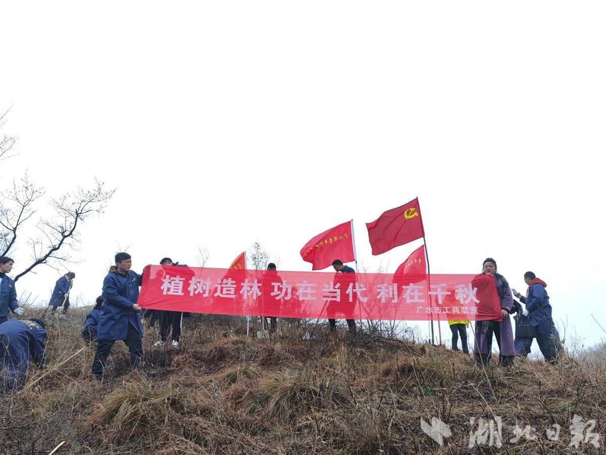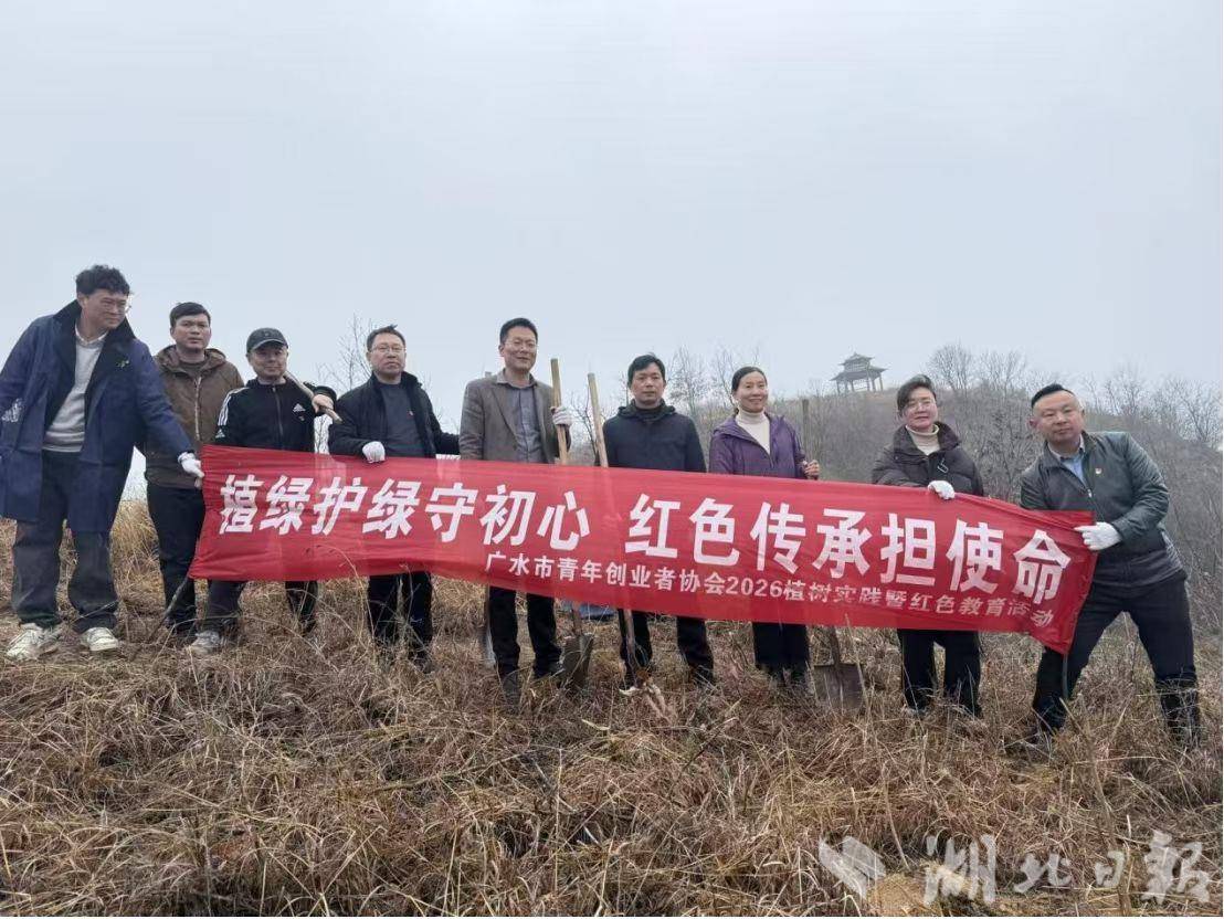 湖北日报讯(通讯员刘小斌、曾毅)春风拂野添新绿,红色铸魂践初心。3月16日,由广水市工商业联合会、吴店镇人民政府联合主办,市青年创业者协会承办的“植绿护绿守初心、红色传承担使命”植树暨红色教育主题活动,在吴店镇尹家湾成功举办。全市6家直属商(协)会100余名会员代表齐聚现场,以双手植绿守护生态家园,以红色研学砥砺初心使命,实现“植绿护绿”与“思想铸魂”双向赋能。