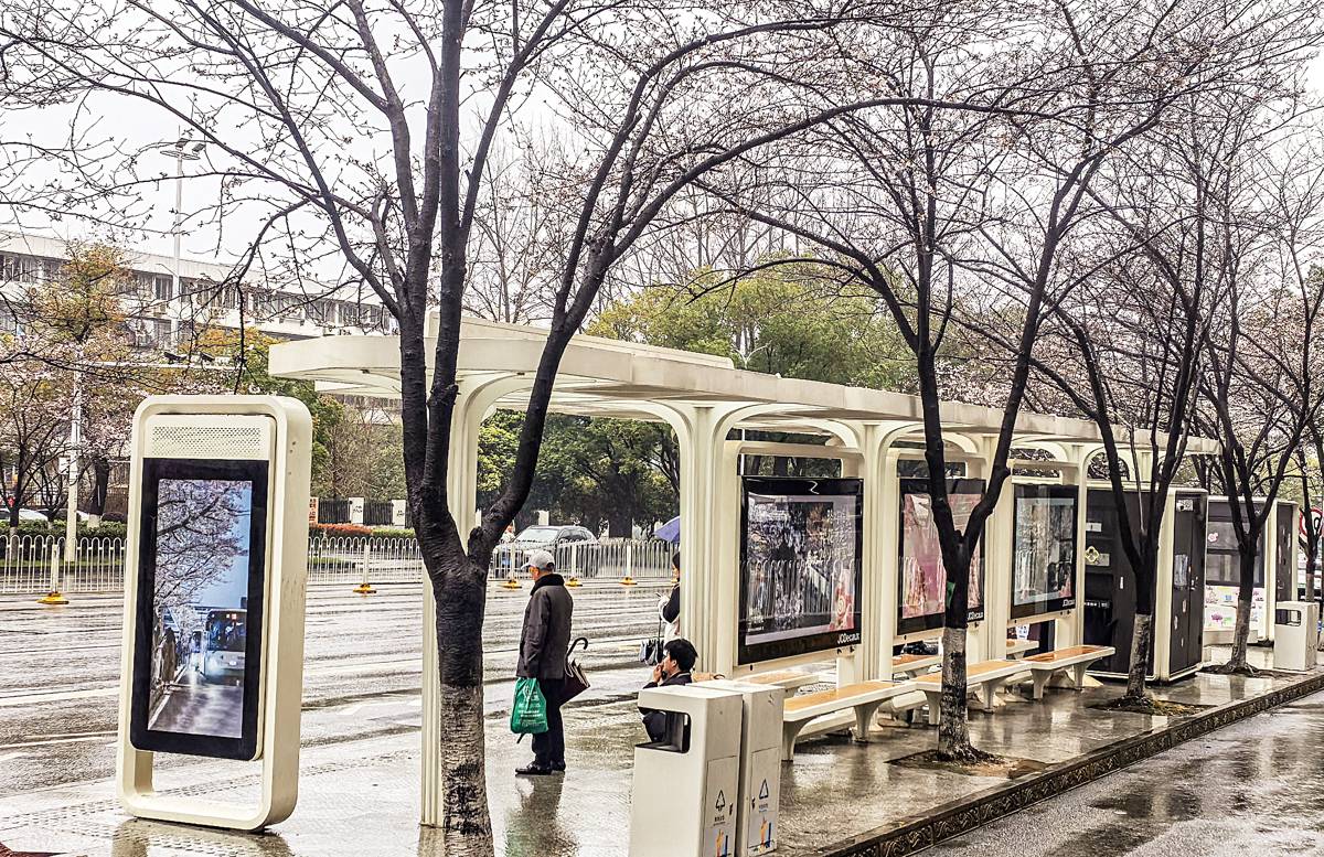 3月17日,武汉光谷珞喻东路大黄村公交站,环绕站台的11棵樱花树仍处于含苞待放阶段。