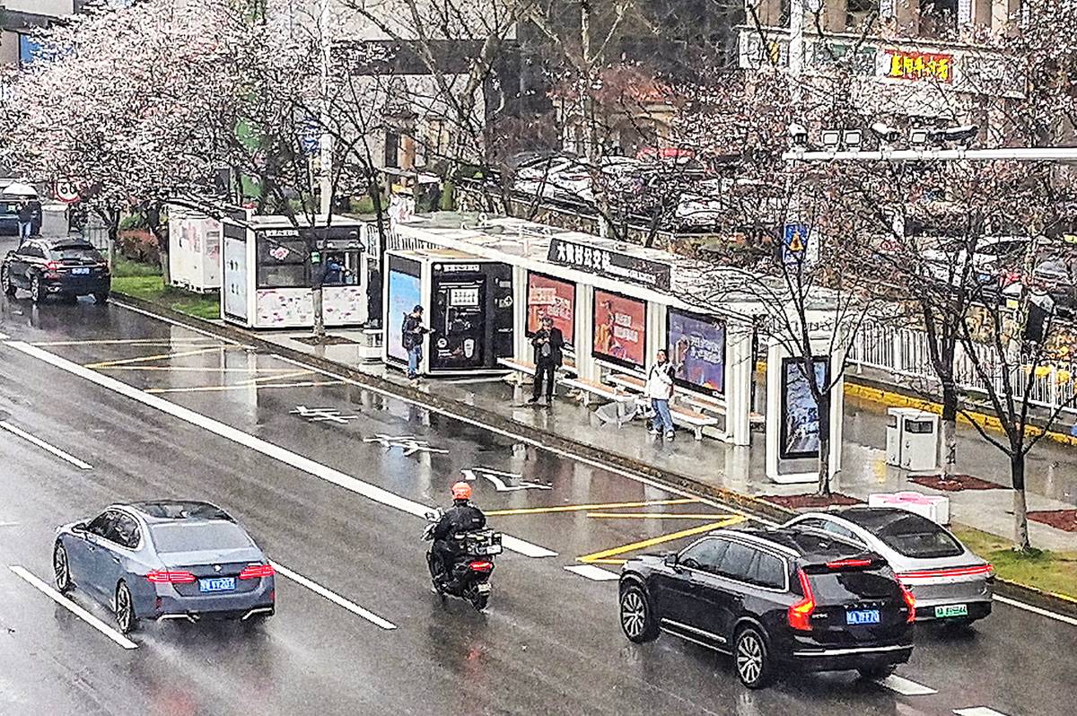 3月17日,武汉光谷珞喻东路大黄村公交站,环绕站台的11棵樱花树仍处于含苞待放阶段,视觉效果较为平淡,暂未展现出最美公交站的浪漫氛围,还没有到最佳观赏期,大家不要白跑。(湖北日报全媒记者朱熙勇摄)