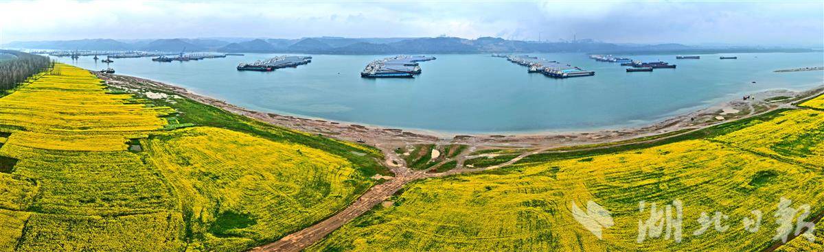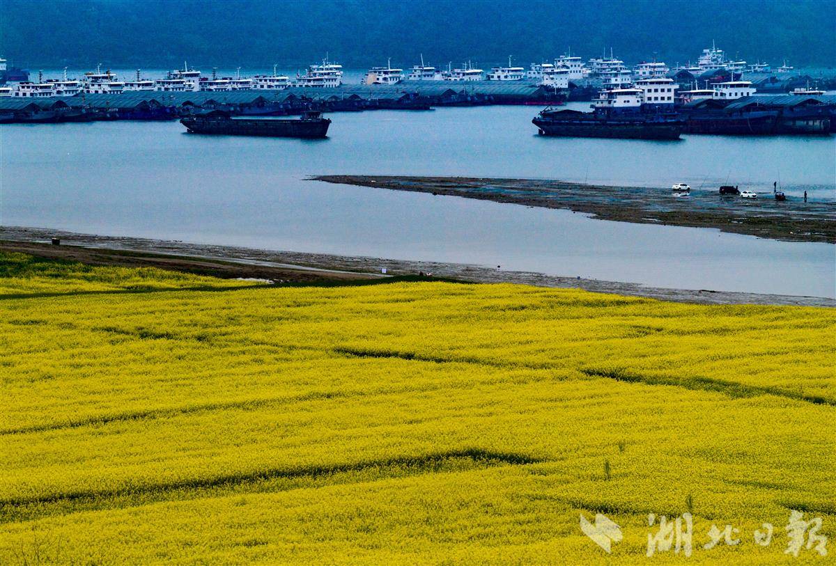 3月17日,枝江市顾家店镇千亩江滩上,连片油菜花进入盛花期,金黄花海沿长江岸线绵延铺展,与奔流江水相映,尽显长江金色岸线的壮阔之美,构成一幅独具韵味、气势磅礴的滨江春日图景。这里近山临江、景致独特,游客置身花海之中,既可远眺山峦叠翠,亦可近观江水奔流,金黄花浪与穿行的游人、抛锚待闸的船舶相映成趣,勾勒出“远山、近水、繁花、行船”的灵动画卷,凭借绝佳的滨江视野与开阔的露营空间,成为周边游客踏青露营的热门打卡地。