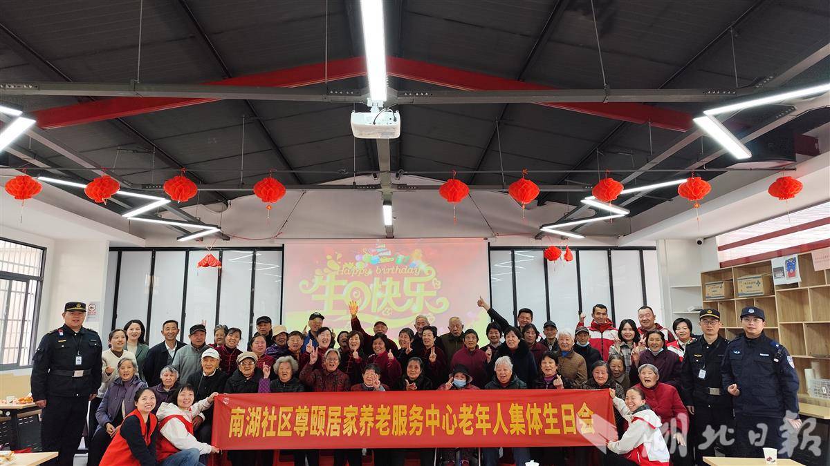 湖北日报讯(记者方琳、通讯员崔巍)日前,武汉市东湖新技术开发区南湖社区多功能活动中心里,传出《生日快乐》歌。一群满头银发的老人围坐在一起,头戴生日帽,脸上带着笑意,共同度过了一个属于他们的特别日子。