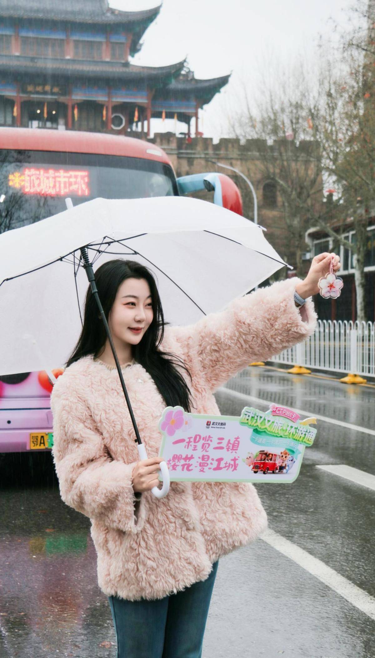 本次活动以“一程览三镇·樱花漫江城”为主题,推出【武汉文旅·环游通】赏樱季限定CTpass卡。该卡为樱花造型文创产品,兼具武汉通储值卡功能,可在公交、地铁、轮渡及武汉至黄冈高铁等场景使用,实现“一卡通乘”。卡内包含武汉文旅城市环游巴士单人票一张,并附赠15元充值券,持卡人还可享受黄鹤楼、两江游览、热雪奇迹等景区门票优惠或免票权益。卡片可通过武汉文旅码、抖音等平台线上购买,线下核销领取,支持NFC充值和自助设备充值。