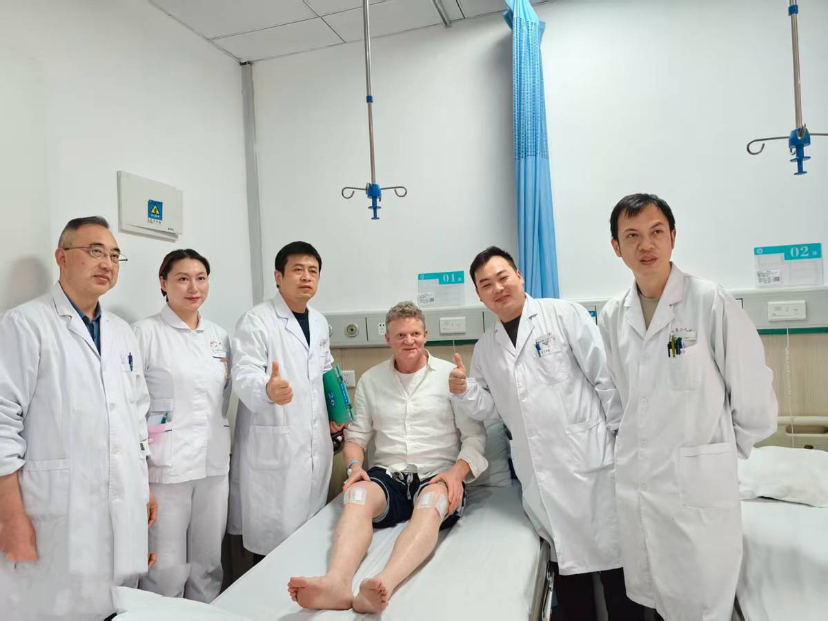 “术后几乎不疼!”术后约6小时,Guy在医护人员鼓励下顺利下地行走。术后第三天,他的膝关节已无明显痛感,活动自如,正常行走完全不受限。“我原本做好了长期康复的准备,没想到恢复得这么快,治疗费用也远低于预期,相信不久后就能重返绿茵场!”Guy和妻子对治疗效果十分满意,还特意在社交媒体发布视频,分享这次难忘的中国就医体验。