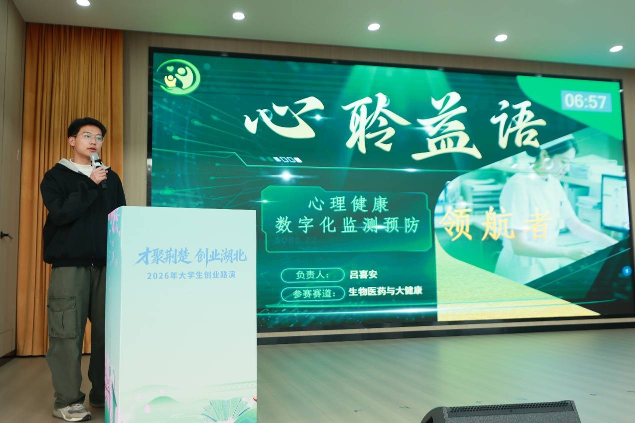 湖北日报讯(记者文俊、通讯员李金贞)近日,“才聚荆楚·创业湖北”2026年大学生创业第二场路演在湖北就业大厦举办,来自省内多所高校的8个“金点子”项目登台。活动通过嘉宾分享、项目路演、导师点评、零距离对话等环节,为大学生创业者搭建展示交流平台,助力“金点子”项目加速成长。活动吸引了湖北工业大学工程技术学院、武昌首义学院近50名师生代表到场观摩。