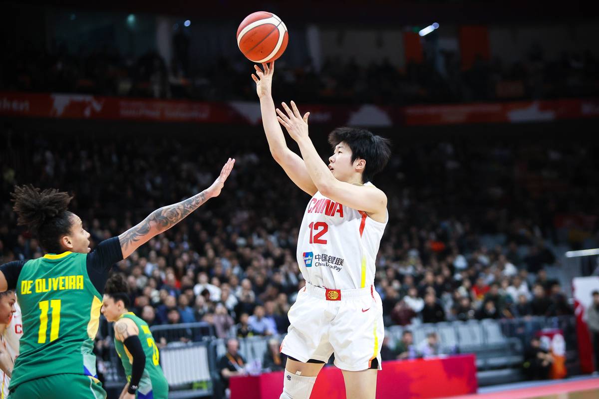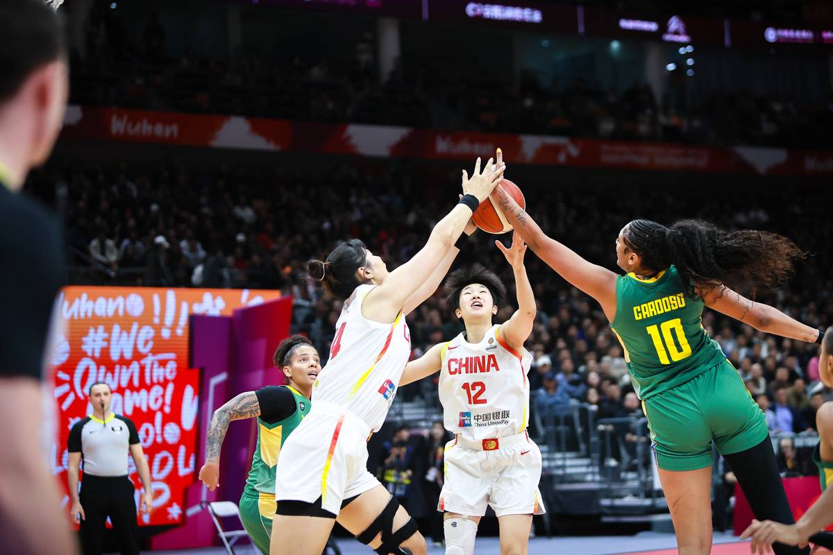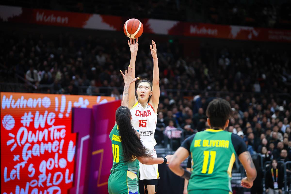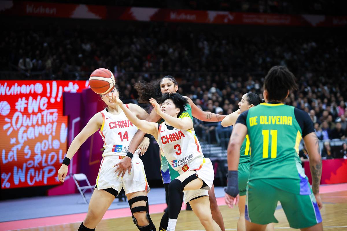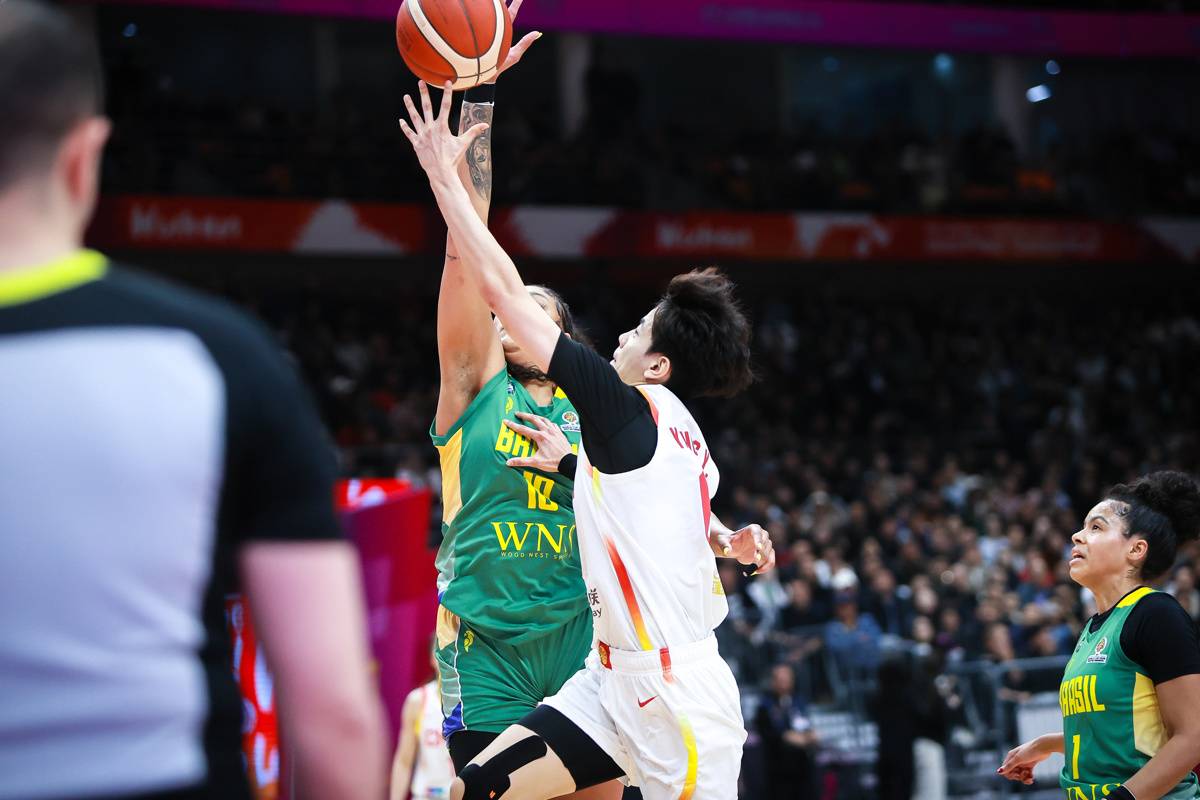 3月17日,武汉体育中心体育馆,女篮世预赛武汉赛区收官日,已经提前晋级世界杯正赛的中国队面对只有赢球才能晋级的巴西队,凭借着女篮姑娘们的顽强拼搏,最终以83比71战胜巴西,完美收官世预赛。世界传统强队、美洲杯冠军巴西队则因小分劣势,被捷克、马里挤出德国世界杯正赛。(湖北日报全媒记者 时龚 摄)