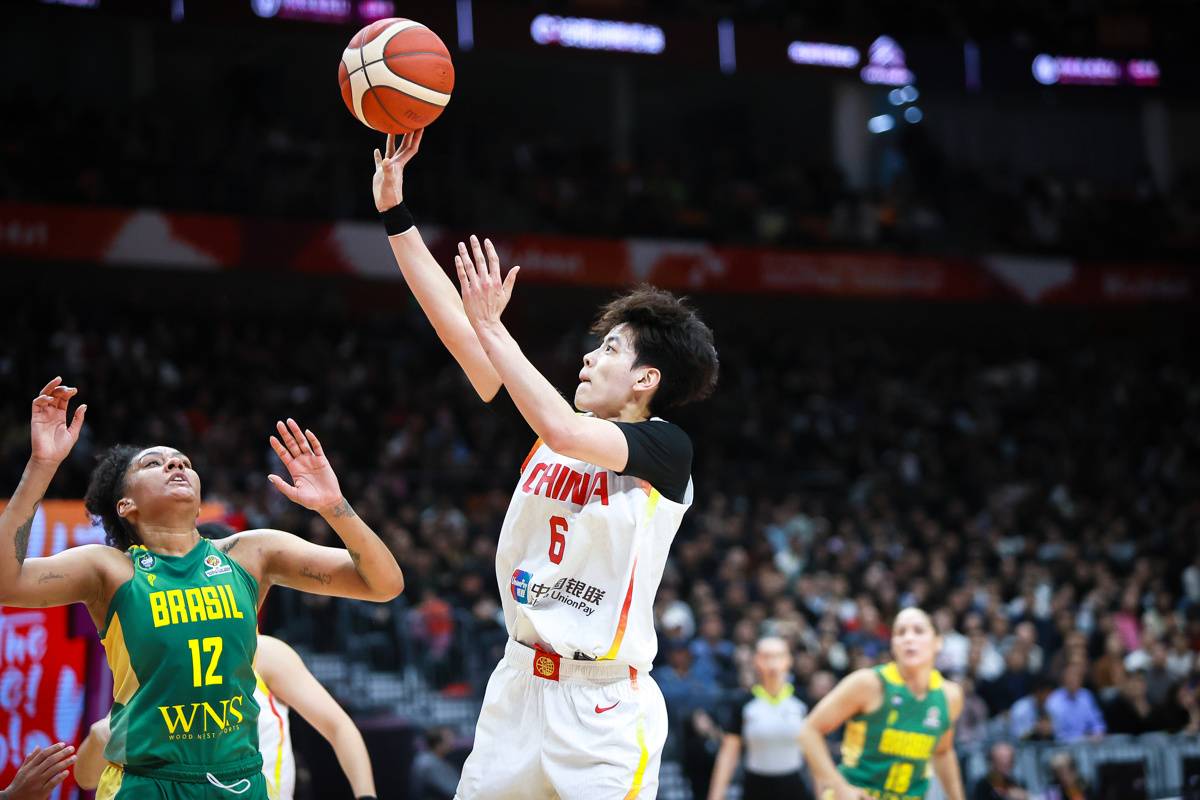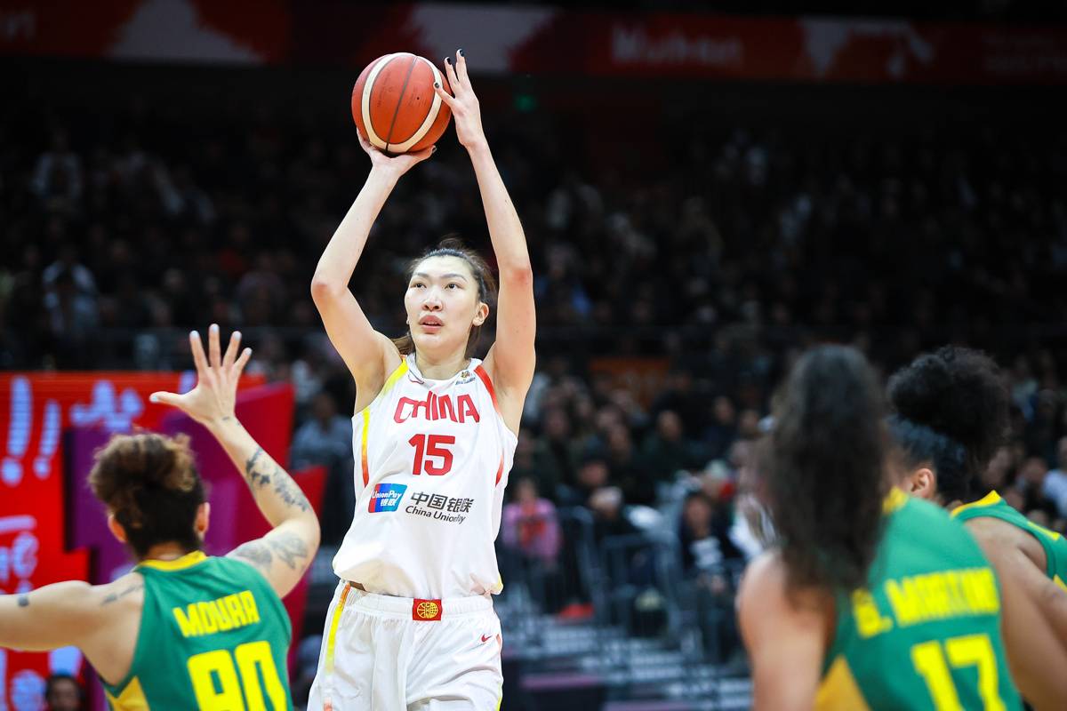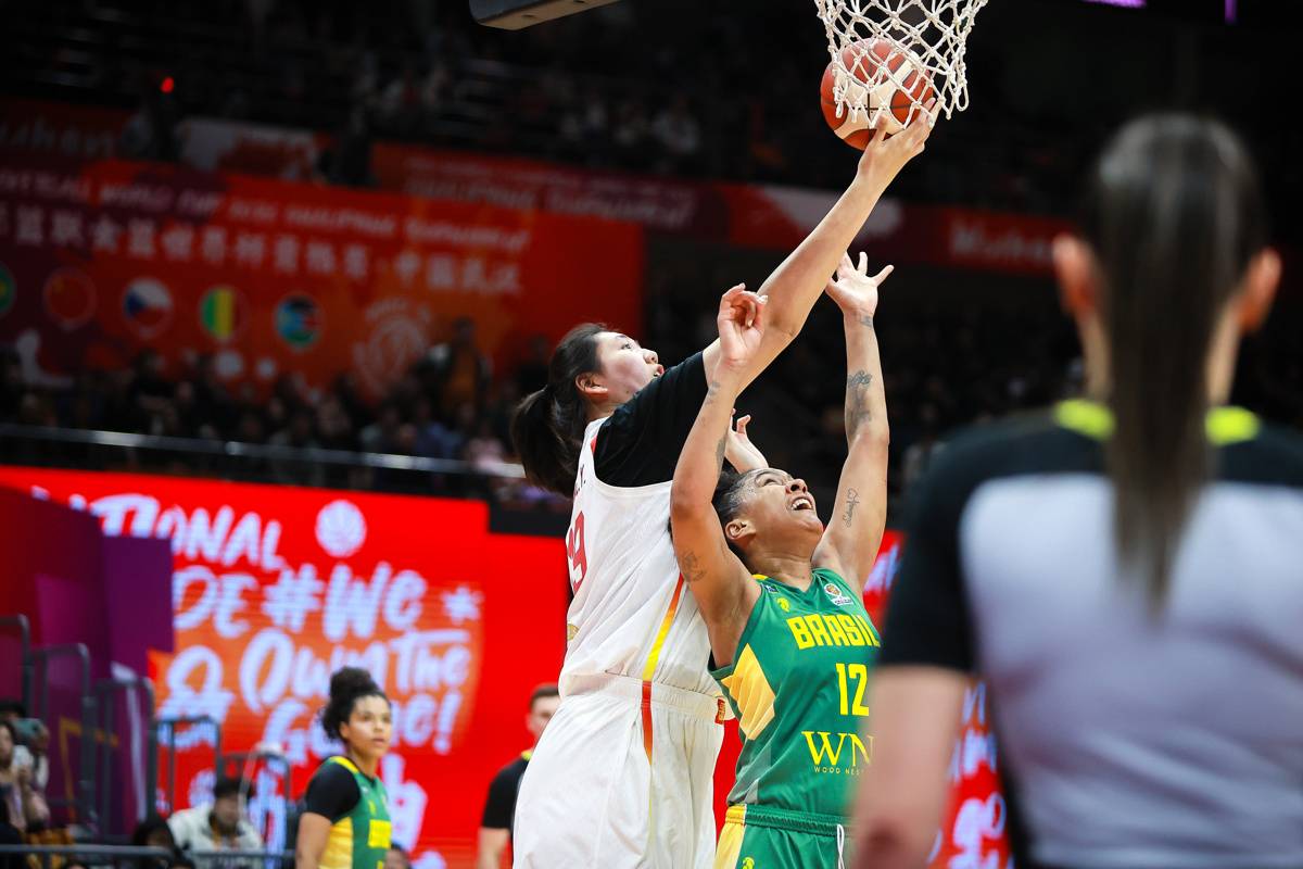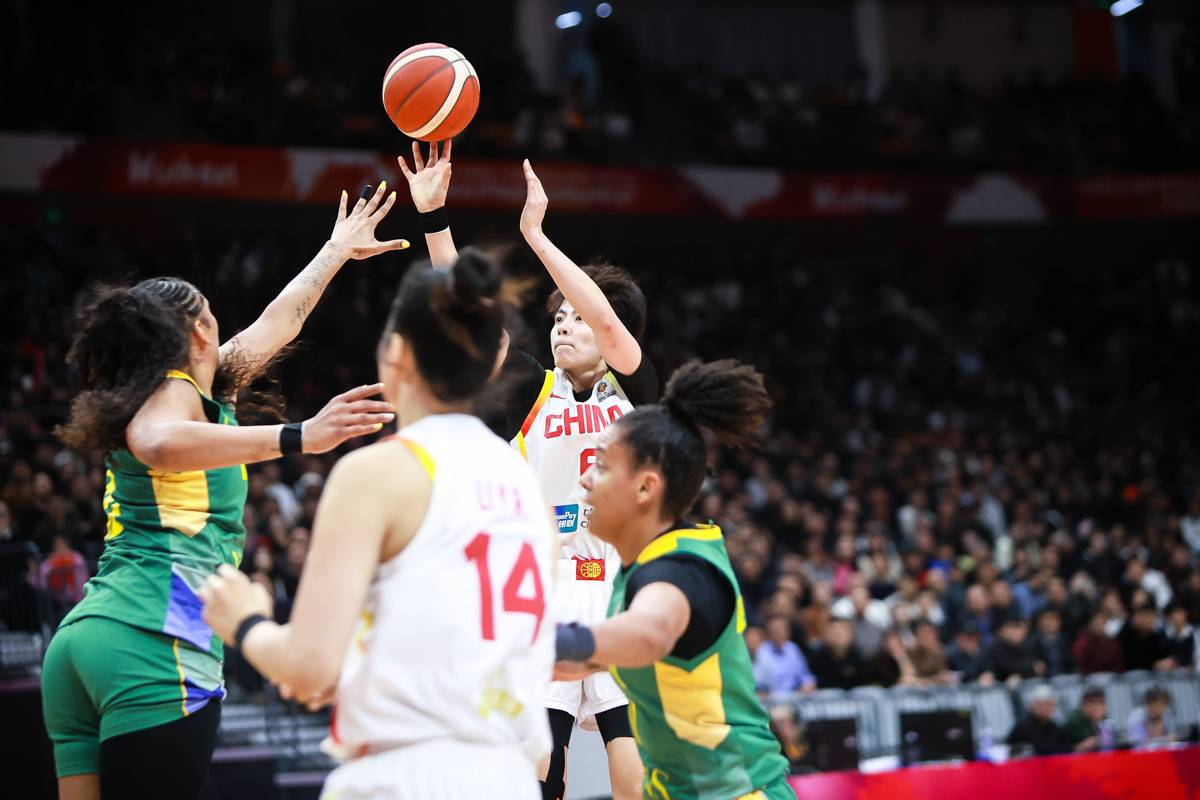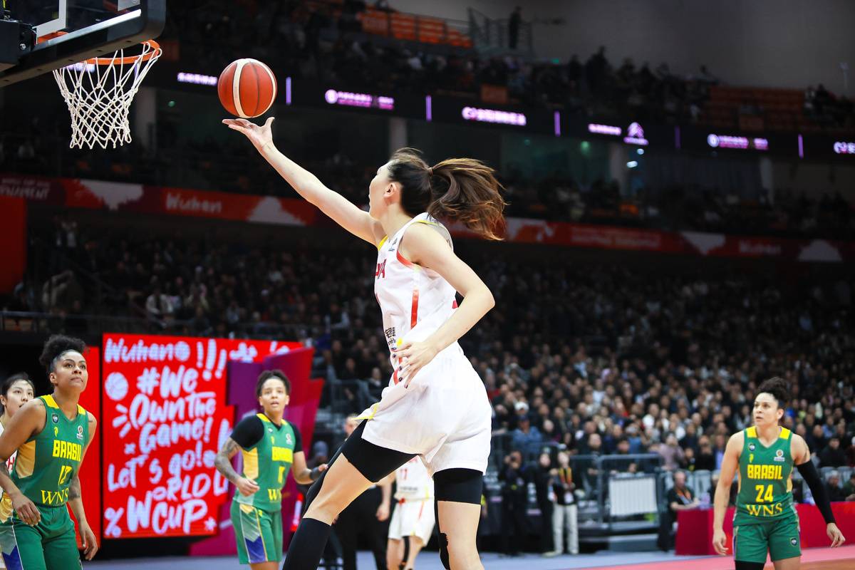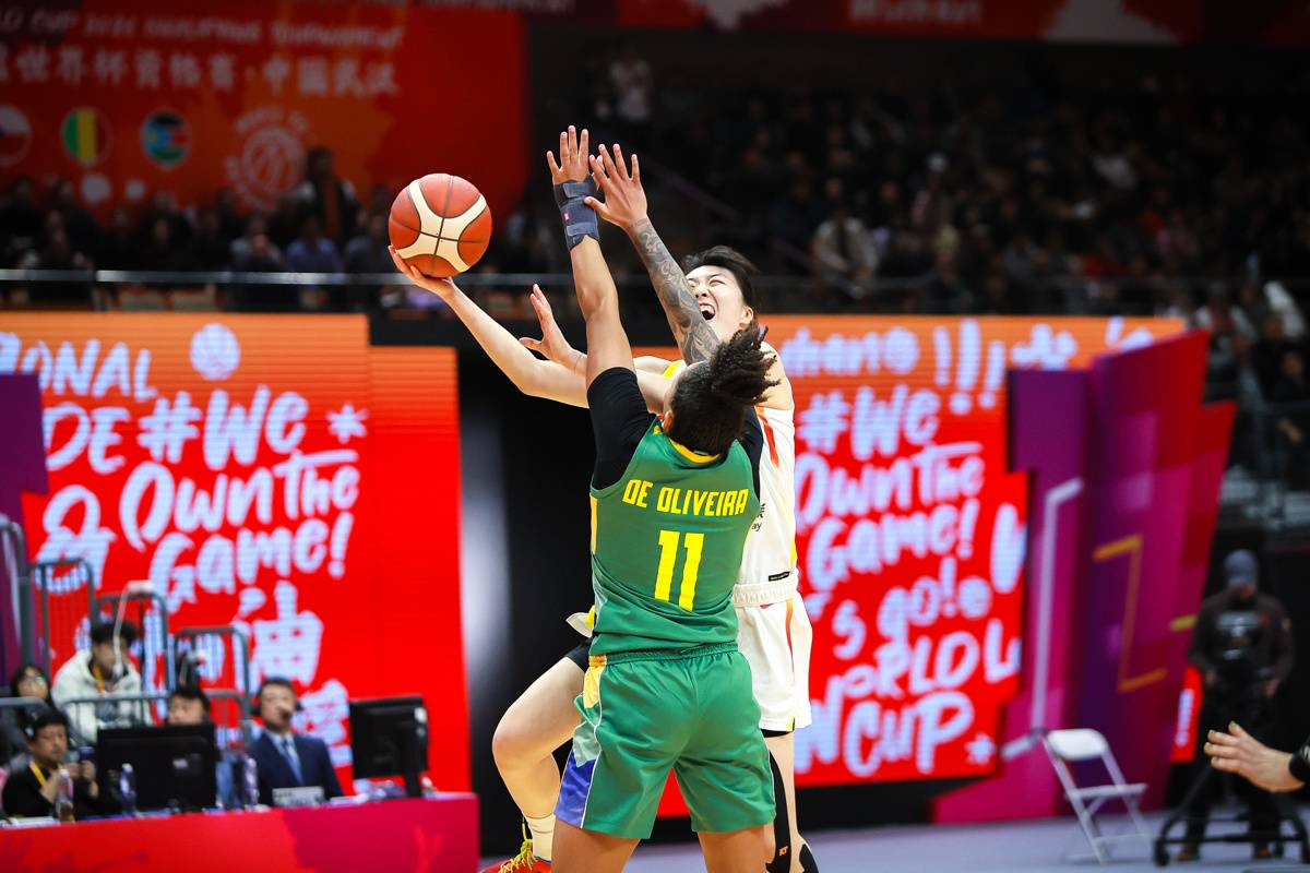 3月17日,武汉体育中心体育馆,女篮世预赛武汉赛区收官日,已经提前晋级世界杯正赛的中国队面对只有赢球才能晋级的巴西队,凭借着女篮姑娘们的顽强拼搏,最终以83比71战胜巴西,完美收官世预赛。世界传统强队、美洲杯冠军巴西队则因小分劣势,被捷克、马里挤出德国世界杯正赛。(湖北日报全媒记者 时龚 摄)