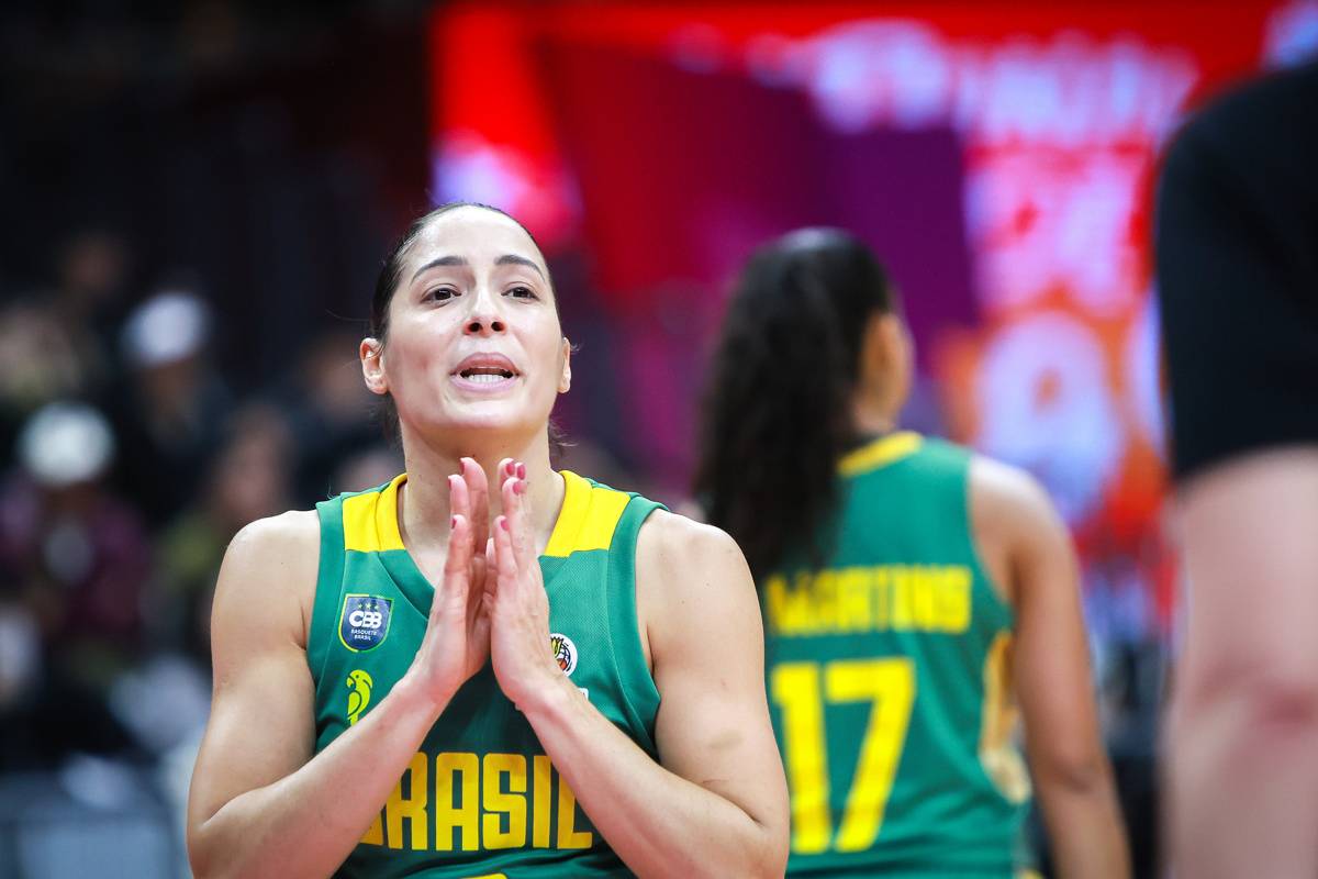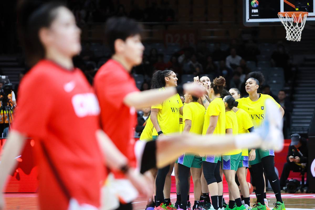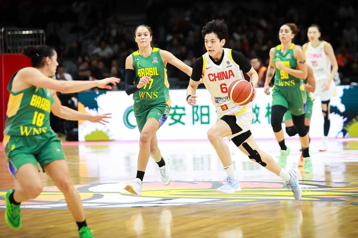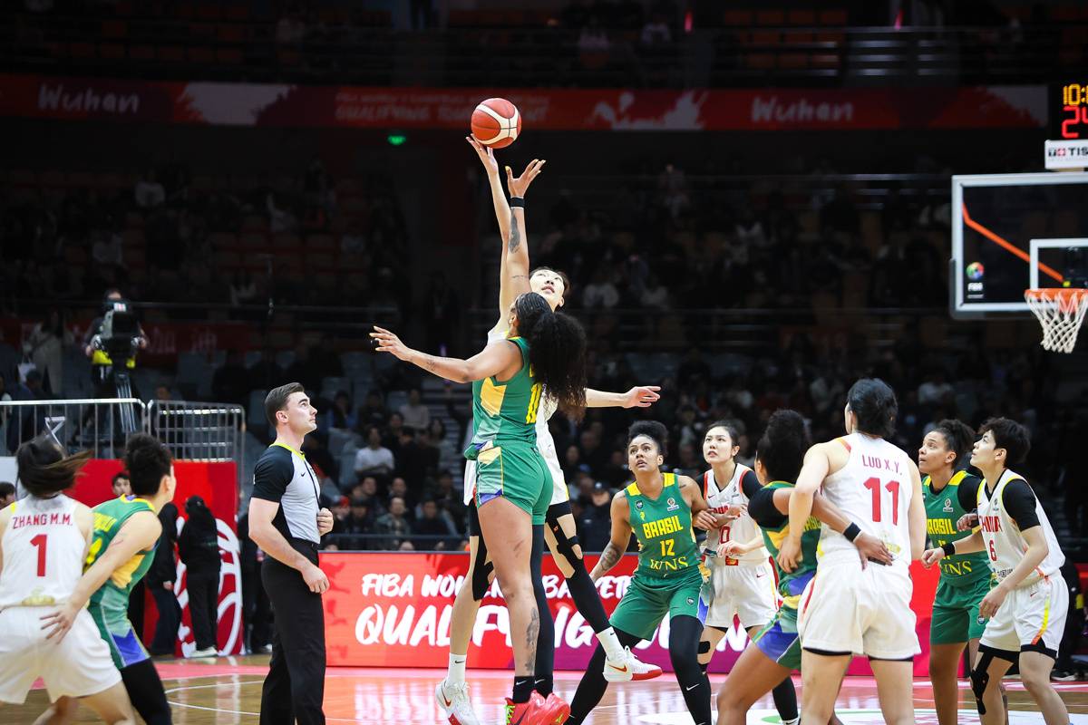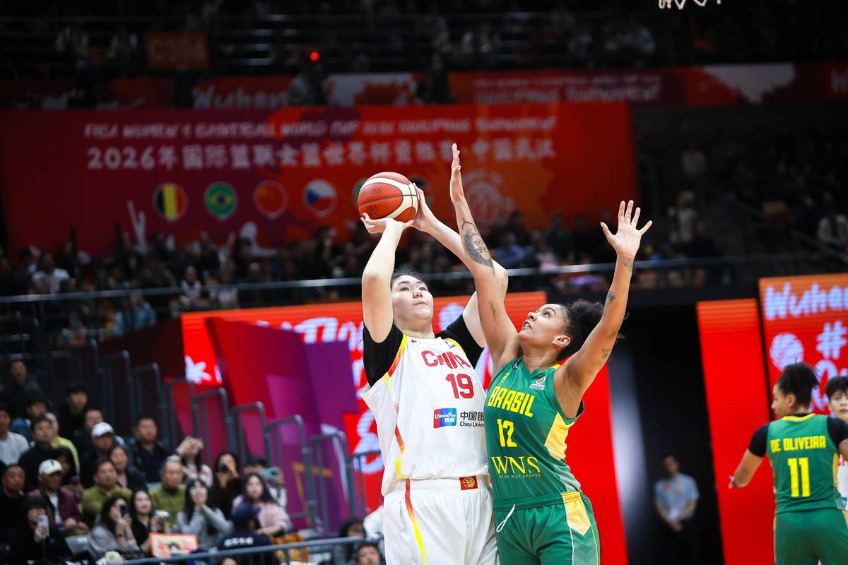3月17日,武汉体育中心体育馆,女篮世预赛武汉赛区收官日,已经提前晋级世界杯正赛的中国队面对只有赢球才能晋级的巴西队,凭借着女篮姑娘们的顽强拼搏,最终以83比71战胜巴西,完美收官世预赛。世界传统强队、美洲杯冠军巴西队则因小分劣势,被捷克、马里挤出德国世界杯正赛。(湖北日报全媒记者 时龚 摄)