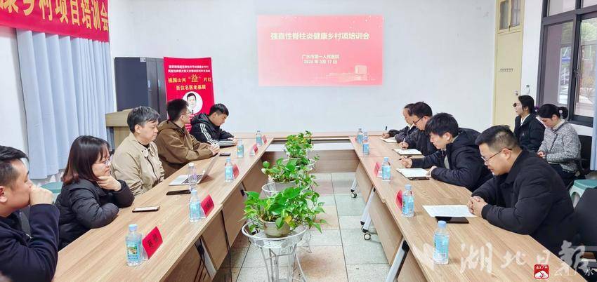 湖北日报客户端讯(通讯员王琪 何亚凌 叶旭光)3月17日,“关爱脊柱,挺直脊梁”强直性脊柱炎健康乡村项目(广水站)学术活动在广水市一医院成功举办。华中科技大学同济医学院附属协和医院风湿免疫科李秋柏教授、刘晓晶教授等出席会议,广水市一医院副院长李建军及相关临床科室负责人参与会议。会议由广水市一医院中医(风湿免疫)科主任叶旭光主持。