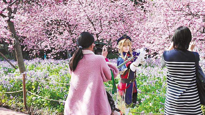 3月11日,武汉东湖樱花园的阳光正好,粉嫩的早樱如云似霞。