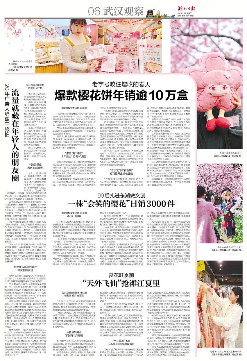樱花季,成为与春节、端午、中秋三大传统节令并驾齐驱的消费新节。“3月份原本是生产淡季,现在却成了我们最忙碌的旺季之一。”这种由文旅消费带来的“反季节”增长,为企业开辟了全新的增长曲线。