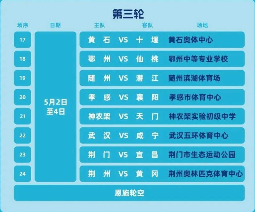 根据抽签规则,黄石队作为揭幕战主场队伍直接落位1号签位,其余16支队伍分批抽取顺序签与落位签,最终,全年对阵表和竞赛日程正式敲定。2026年湖北省城市足球联赛揭幕战定于4月12日在黄石开赛,黄石队将在主场对阵荆州队。常规赛预计国庆期间完赛,淘汰赛预计于11月中旬收官。