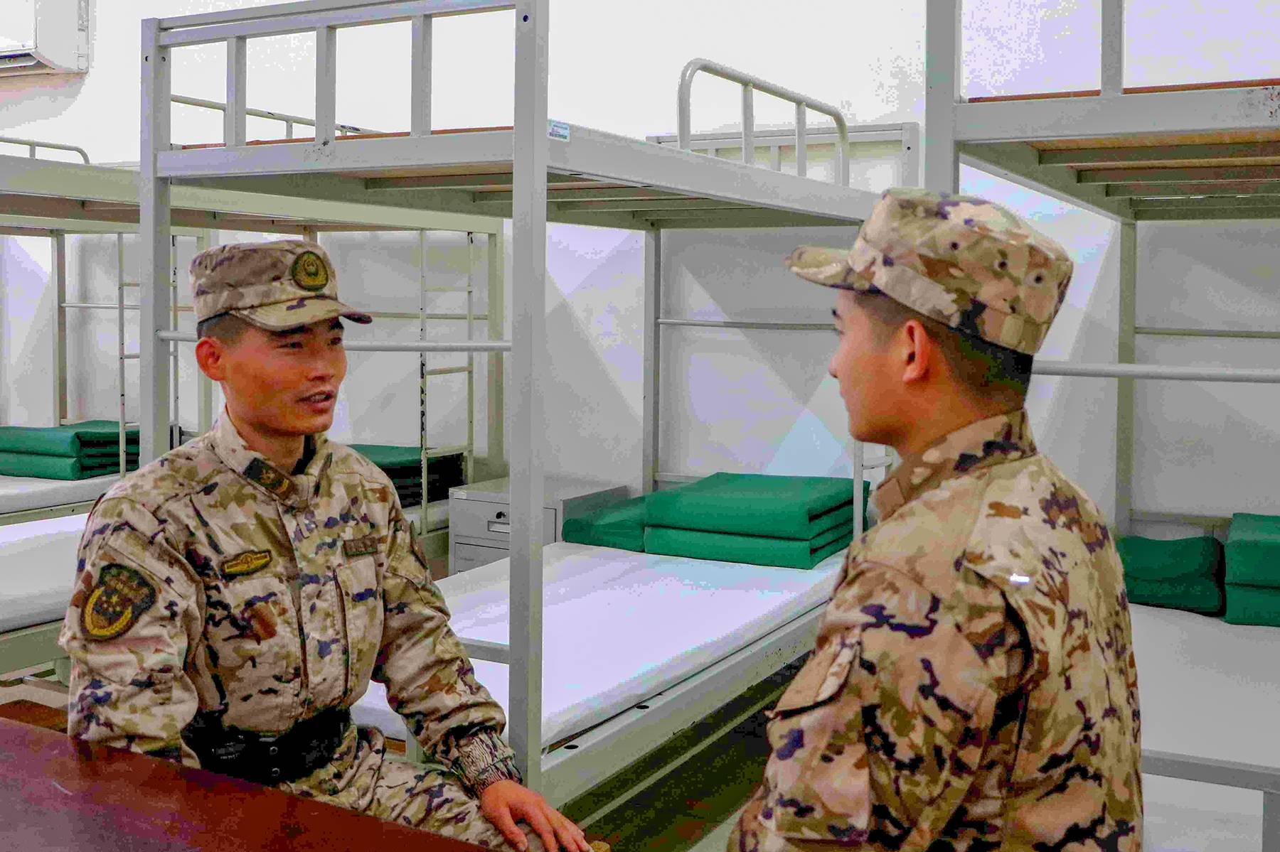 “来,我帮你收拾行李,来到这里就是一家人。”走进宿舍,窗明几净、内务整齐,班长第一时间上前迎接。