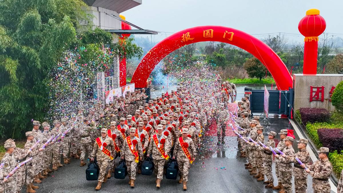 激昂的锣鼓声中,载满新兵的大巴车缓缓驶入营区。道路两侧,官兵们整齐列队,以军营最传统、最热烈的仪式迎接新战友到来。营区门口,“报国门”三个大字熠熠生辉。新兵们昂首挺胸、步伐坚定,穿过这道象征军旅启航的门户,正式踏入这片淬火成钢的火热军营。