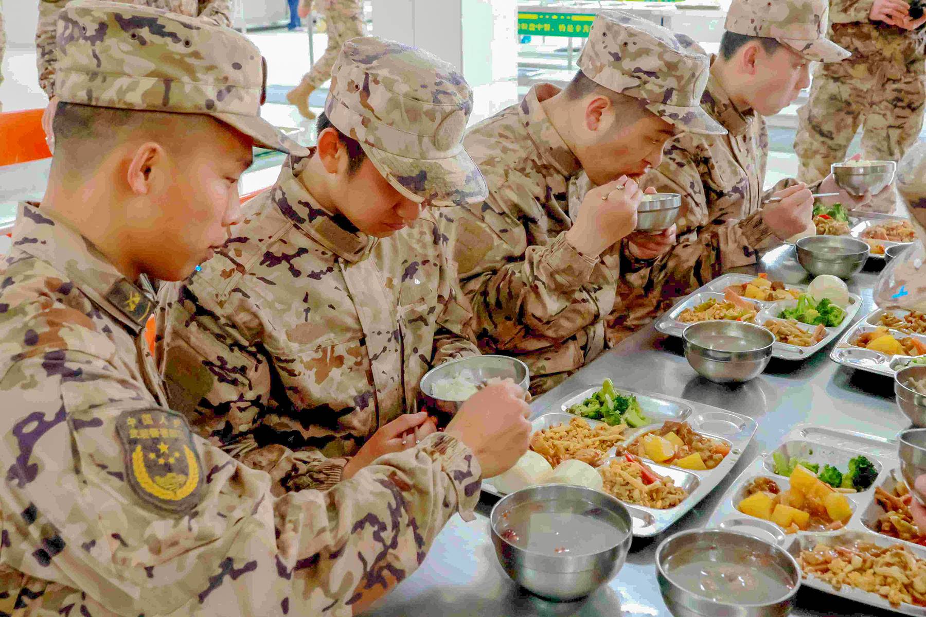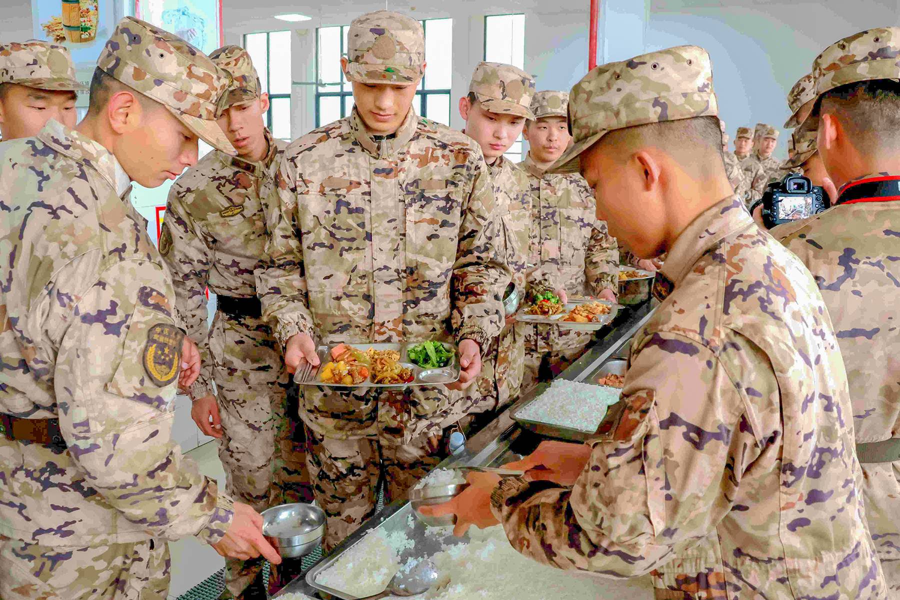 食堂内热气腾腾、饭菜飘香,炊事人员精心准备荤素搭配、营养可口的暖心佳肴。新训干部骨干为新战友盛上入营第一碗饭,让大家在品尝美味的同时,真切感受军营大家庭的温暖。(图片/通讯员 赵力 徐泽阳 蔡政 王波 张承源 冯奥雨 杨垒 摄)