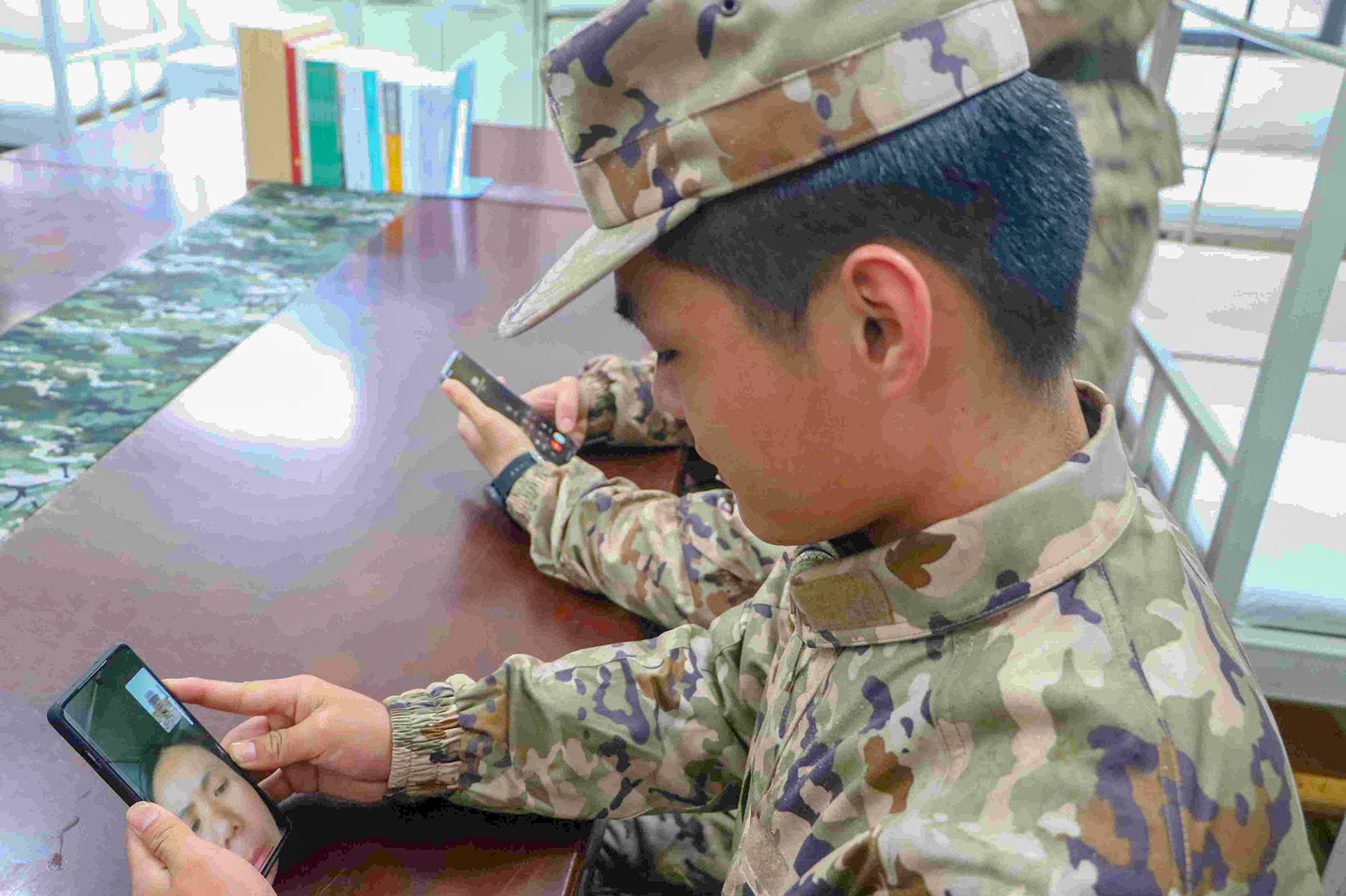“爸、妈,我已经到部队了,班长对我很好,你们放心吧,我会照顾好自己的。”报到结束后,各中队统一组织新兵给家人打电话报平安。
