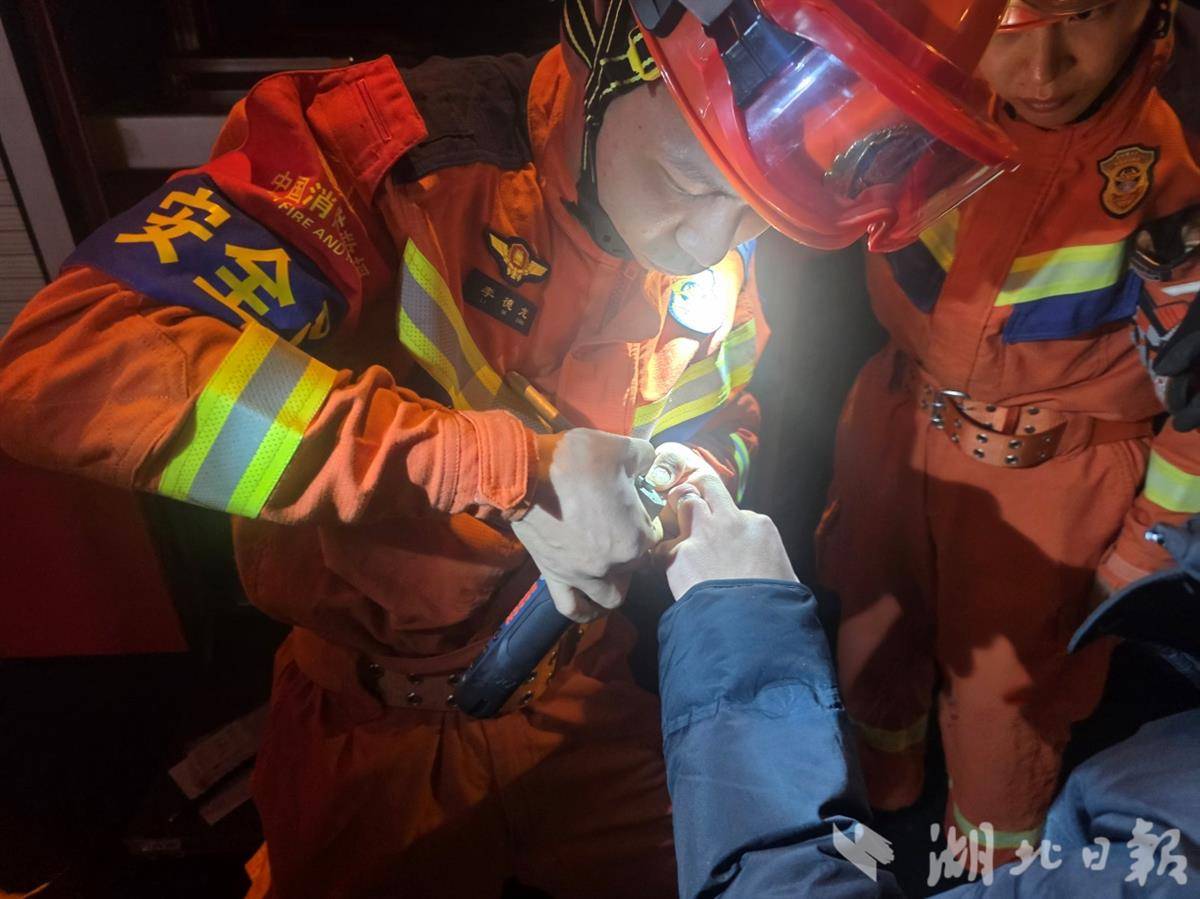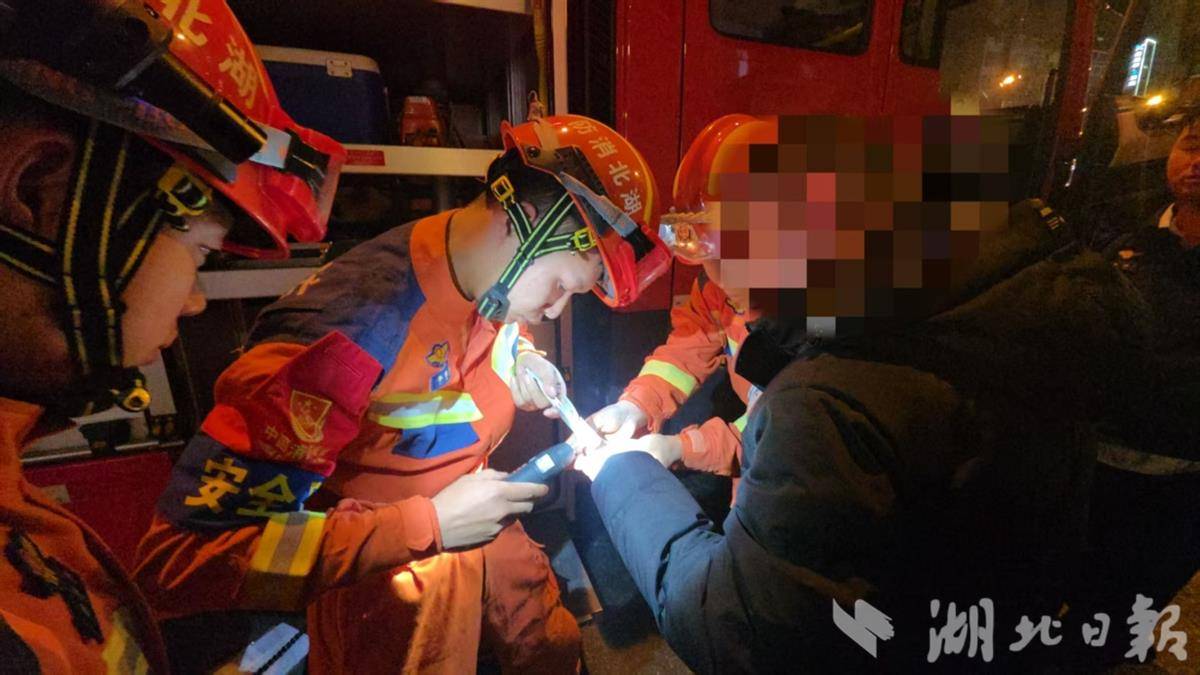 湖北日报讯 (记者童晨曦、通讯员魏欢欢)“帮帮忙,我手上戒指实在是取不下来了。”3月17日22时许,荆门市消防救援局指挥中心接到市民王先生报警,称其位于掇刀区白庙街道月亮湖路一小区的家中,戒指卡住手指,急需救助。接警后,掇刀区月亮湖路消防站迅速出动1车5人赶赴现场处置。