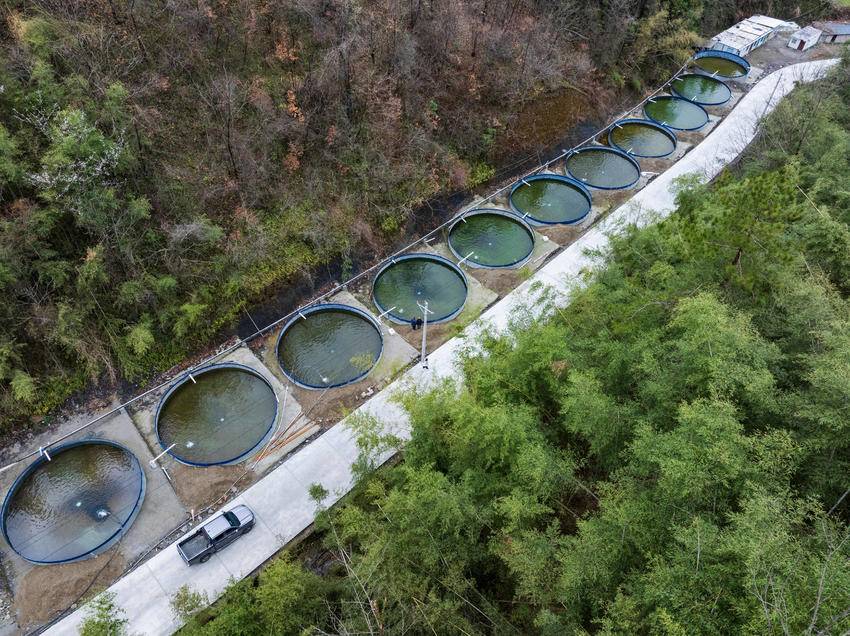 保康县寺坪镇樟木沟村山清水秀、水质优良,境内山涧溪流常年清澈,得天独厚的生态环境十分适宜养殖冷水鱼。近年来,樟木沟村积极探索“党支部+合作社+农户”发展模式,大力发展钱鱼、鳜鱼等特色冷水鱼养殖产业,不断壮大村集体经济,带动村民就近就业、稳定增收,让深山冷水鱼成为乡村振兴的“致富鱼”。(湖北日报客户端通讯员 杨韬 赵硕 梅琼玲 摄)