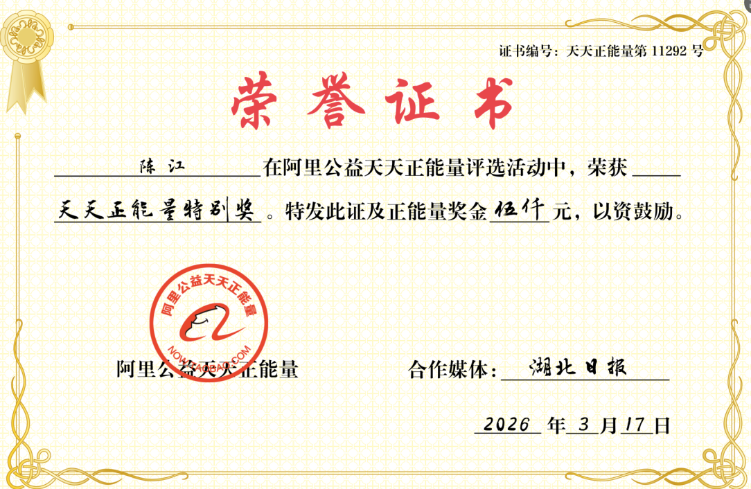 据了解,天天正能量是阿里公益联合全国多家主流媒体打造的公益项目,旨在奖励凡人善举,传递社会温暖。此次为陈江颁奖,既是对其见义勇为行为的肯定,也希望带动更多人向善而行,让平凡善举温暖更多人。