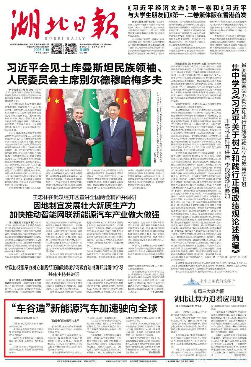 3月19日,湖北日报头版深度报道:“车谷造”新能源汽车加速驶向全球