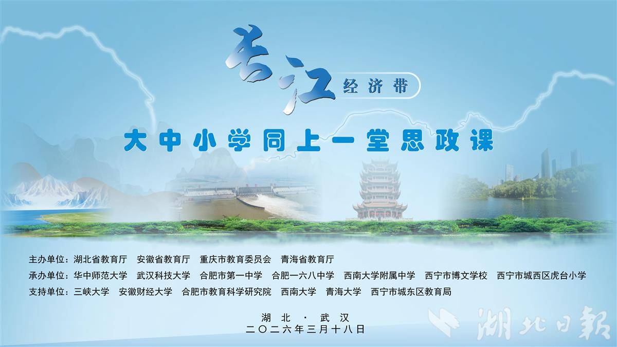 今年是习近平总书记主持召开推动长江经济带发展座谈会十周年和学校思想政治理论课教师座谈会召开七周年。在湖北、安徽、重庆、青海四地教育主管部门的指导下,华中师范大学、武汉科技大学、合肥市第一中学、合肥一六八中学、西南大学附属中学、西宁市博文学校、西宁市城西区虎台小学的师生代表同上一堂思政课,宣传展示传承长江文化。