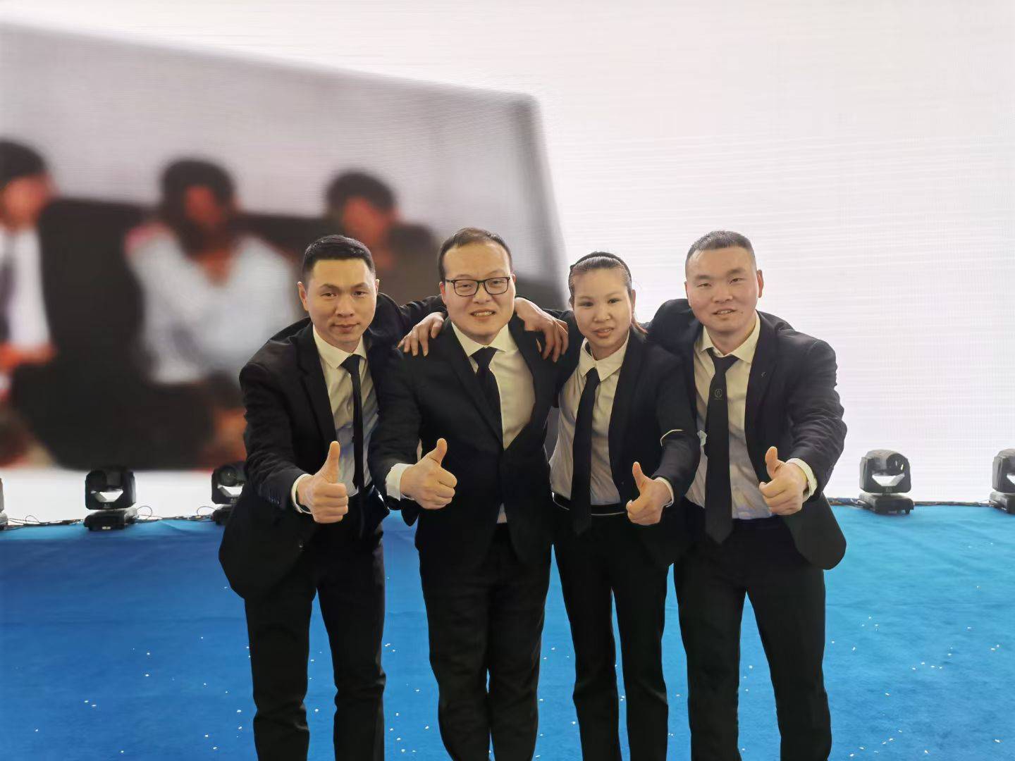 多年后,吴明星(左二)与创业伙伴一起合影。(受访方供图)
