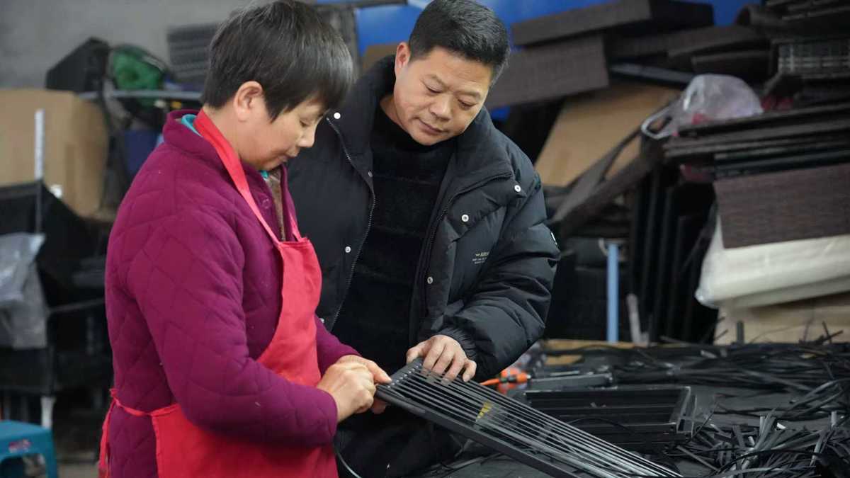 在这里,村民既可以来厂房集中作业,也能把材料带回家,利用农闲、带娃的碎片时间完成加工。