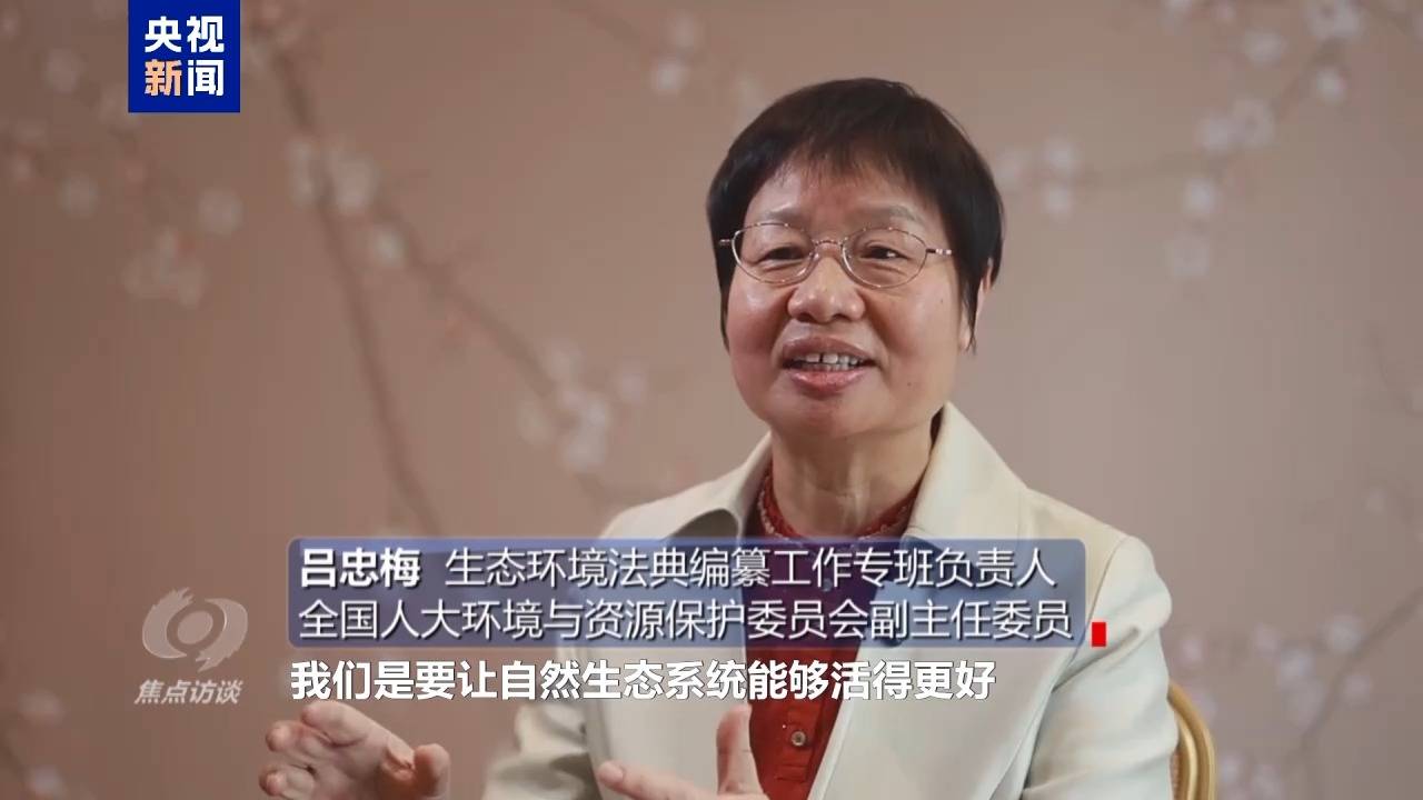 吕忠梅:我们在跟国际社会交流的时候,他们特别关注的就是为什么可以把绿色低碳发展放在一部法律里面,这在很多国家法典里面是没有的。我们要用最严格的生态环境保护和一些管理措施,来倒逼经济社会的绿色低碳发展转型,让整个中国走上绿色低碳的可持续发展道路。