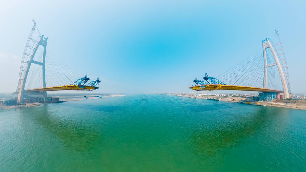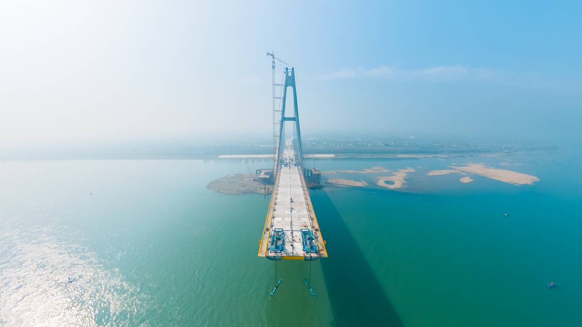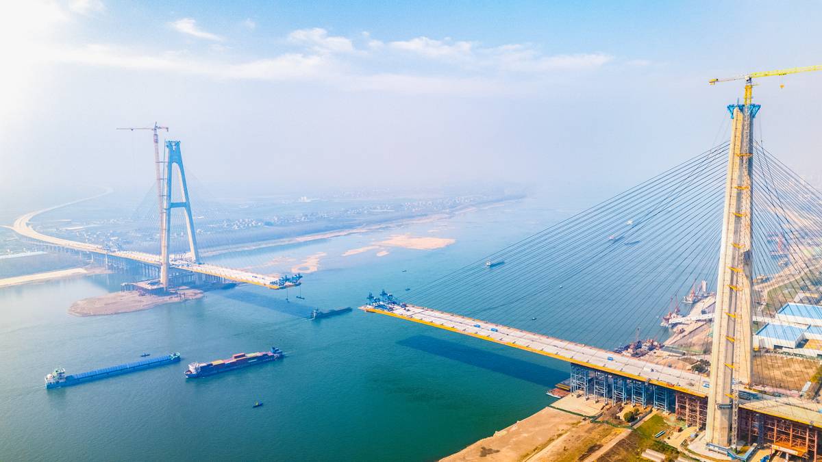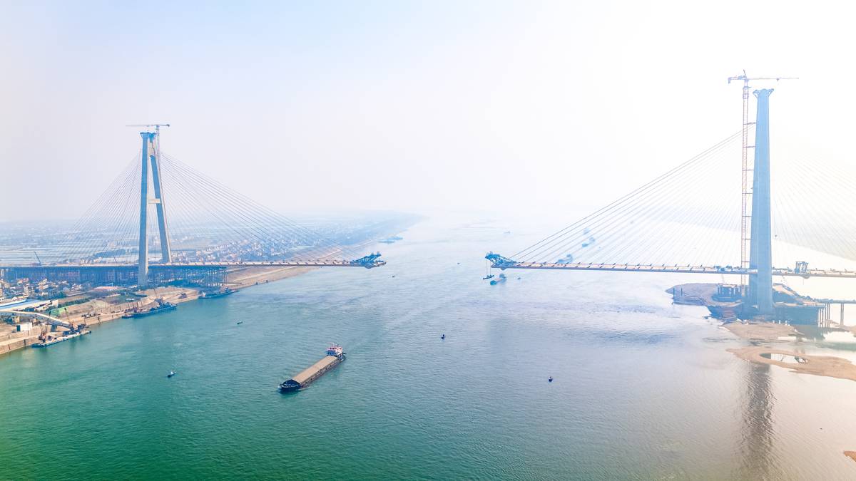 大桥建设挑战重重,其采用的“钢箱梁安装与斜拉索张拉同步进行”施工工艺,要求建设者精准应对施工过程中桥梁线形、内应力的动态变化。为攻克这一难点,建设团队创新运用数字化监控系统,对塔顶偏位、梁段标高、索力等关键指标开展24小时全天候精密监测,施工数据实时传输、动态分析,吊装定位数据随测随调,每一次吊装、每一次张拉都实现毫米级精度控制。建设者们以“绣花功夫”雕琢精品工程,在滔滔长江之上,精心织就这条跨江巨龙。